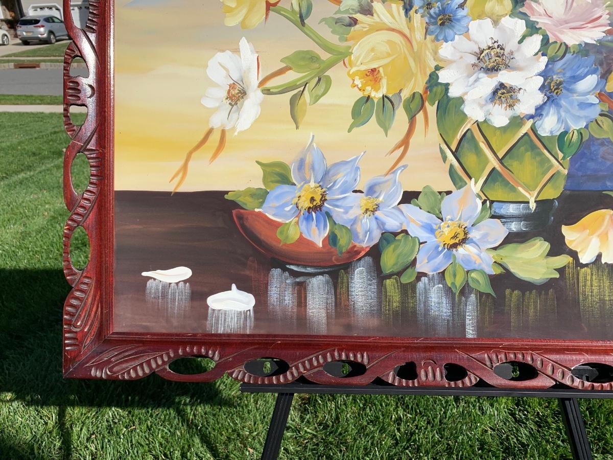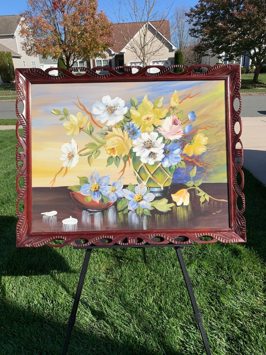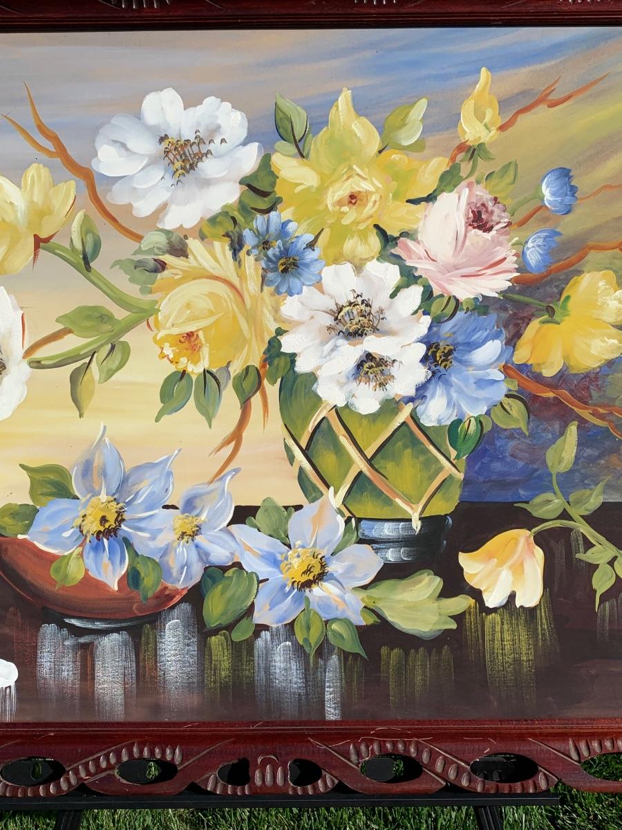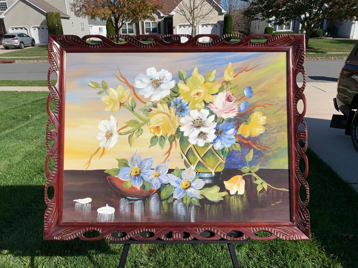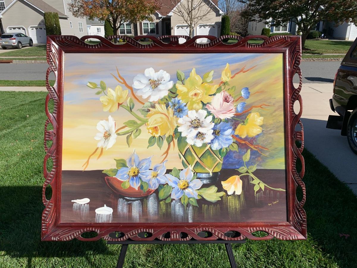 Framed 30x38 inches. Please see all pictures as they are the best representation of the items. The pictures show condition, measurements if taken, and what is included in the lot. Due to the large amount that we photograph and the time frame, we are not always able to take measurements. All items unless noted, are pre-owned and have been used. If you purchased furniture, you must bring help. We do not allow one person to carry large furniture out on their own. Bring help, tools and a truck for the safety of our client’s homes, and your personal safety. Any damages that result to the property including walls, and floors due to moving of the furniture will be charged to the buyer. Company policy. Thank you.