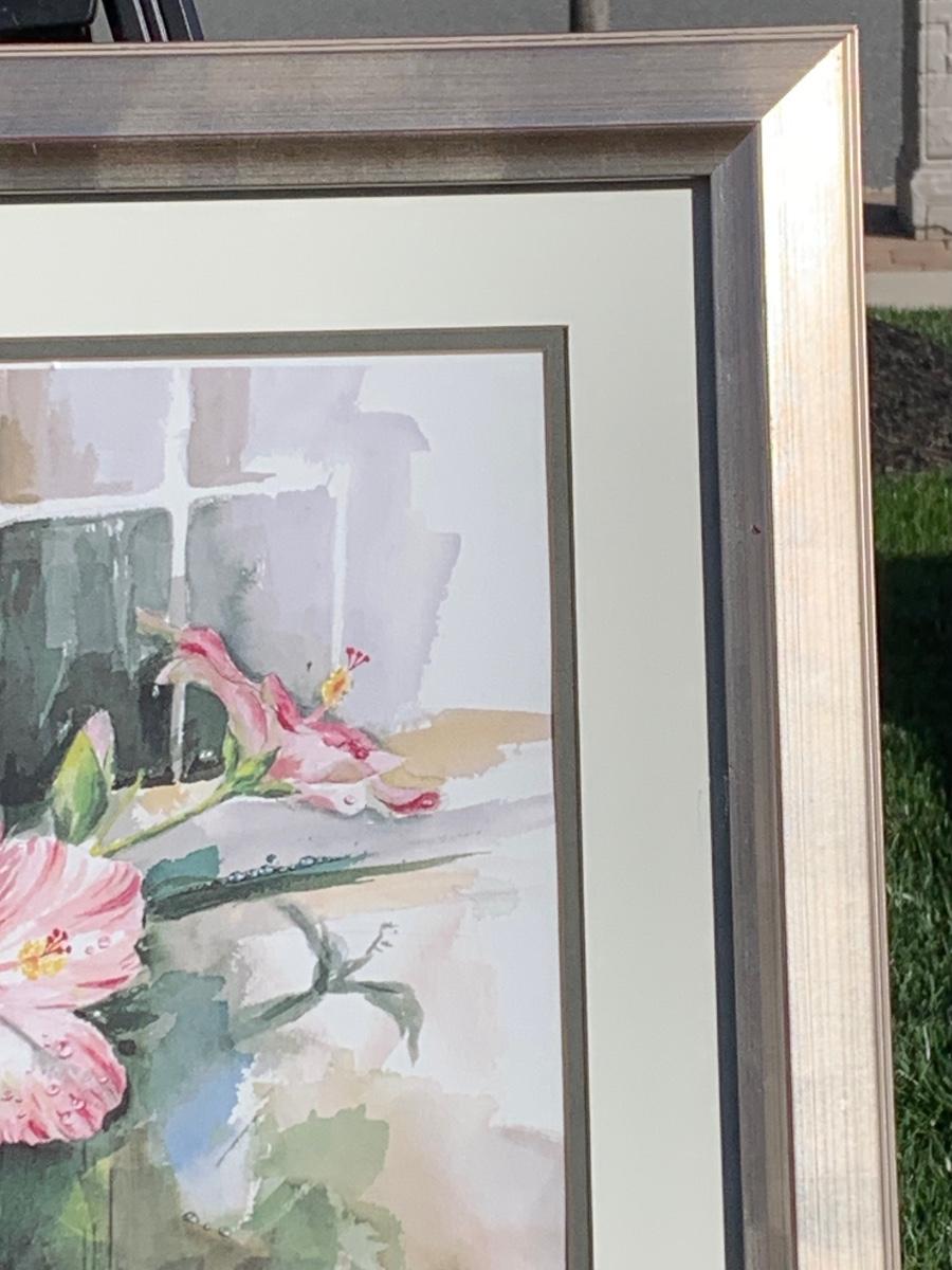 19x23 inches in silver frame. Please see all pictures as they are the best representation of the items. The pictures show condition, measurements if taken, and what is included in the lot. Due to the large amount that we photograph and the time frame, we are not always able to take measurements. All items unless noted, are pre-owned and have been used. If you purchased furniture, you must bring help. We do not allow one person to carry large furniture out on their own. Bring help, tools and a truck for the safety of our client’s homes, and your personal safety. Any damages that result to the property including walls, and floors due to moving of the furniture will be charged to the buyer. Company policy. Thank you.