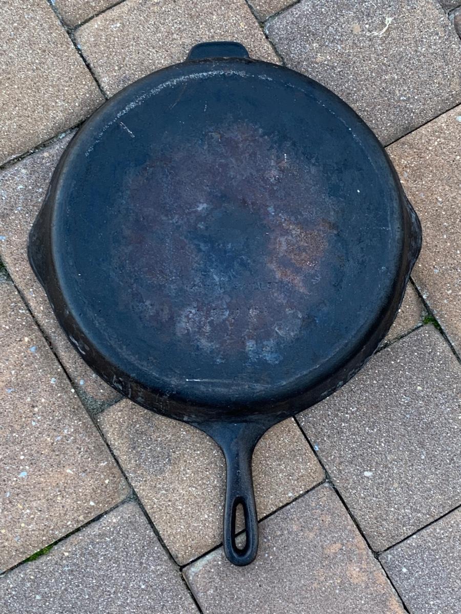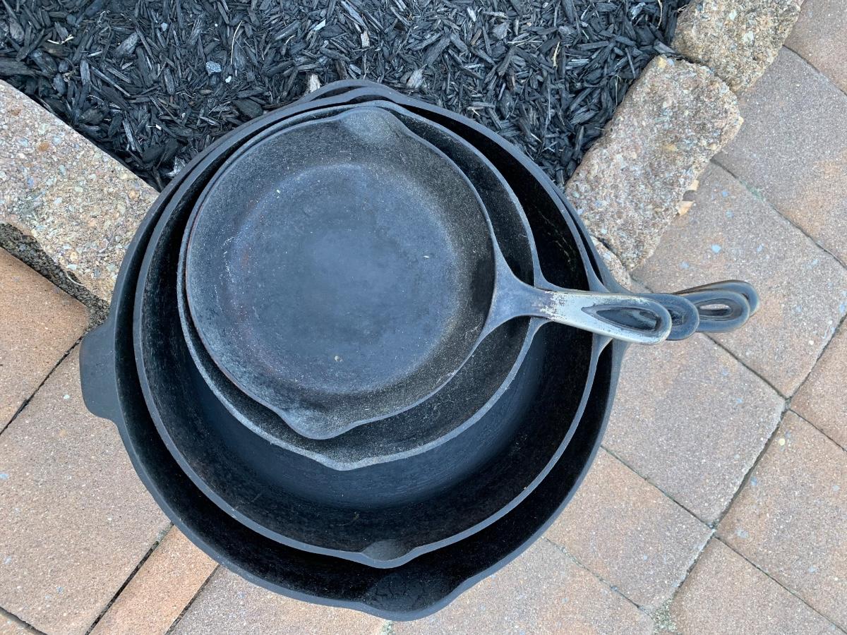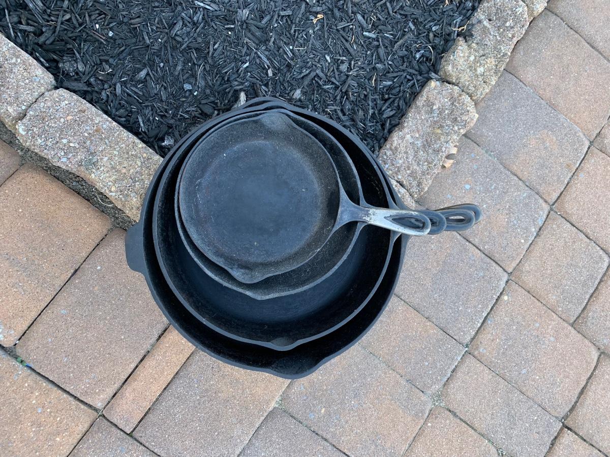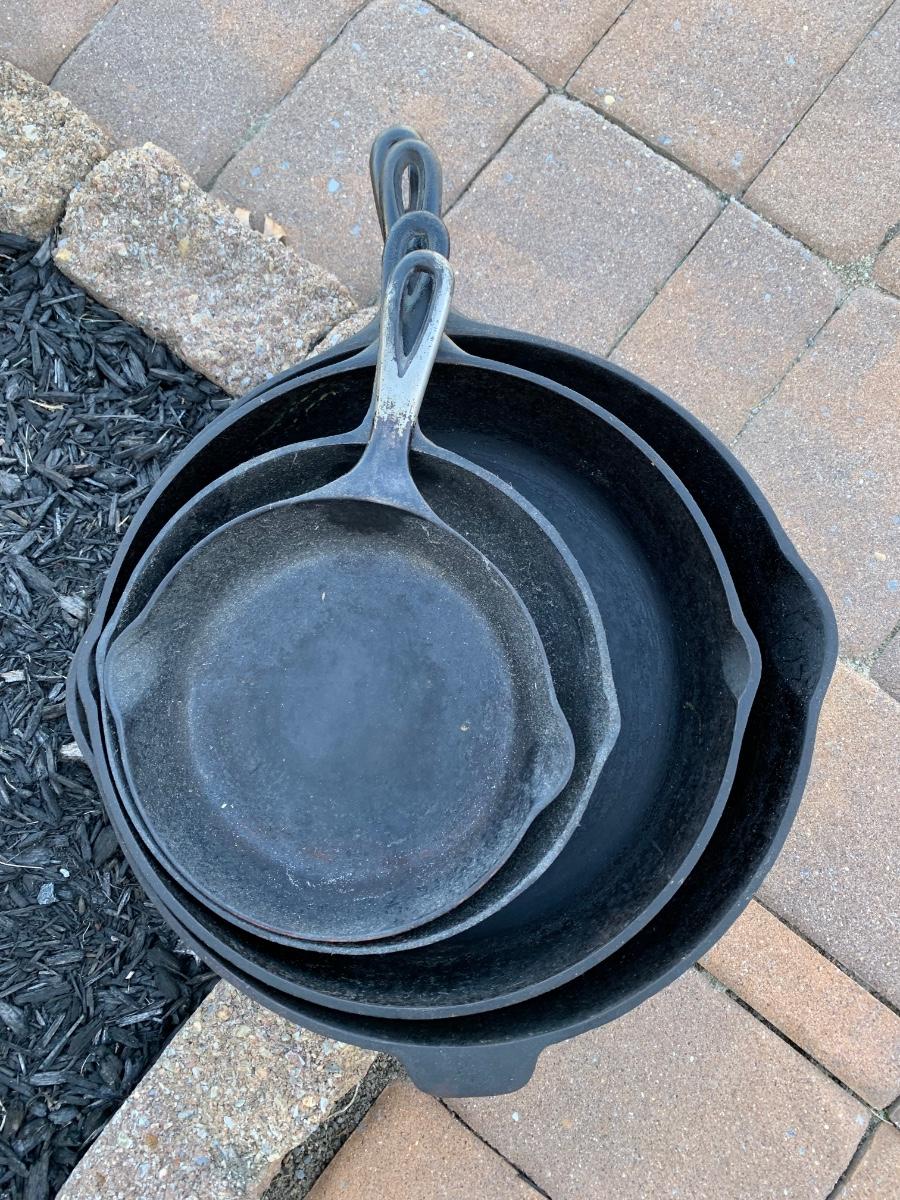 Four cast iron skillets. All pre-owned and could use a cleaning, or reconditioning. Please see all pictures as they are the best representation of the items. The pictures show condition, measurements if taken, and what is included in the lot. Due to the large amount that we photograph and the time frame, we are not always able to take measurements. All items unless noted, are pre-owned and have been used. If you purchased furniture, you must bring help. We do not allow one person to carry large furniture out on their own. Bring help, tools and a truck for the safety of our client’s homes, and your personal safety. Any damages that result to the property including walls, and floors due to moving of the furniture will be charged to the buyer. Company policy. Thank you.
