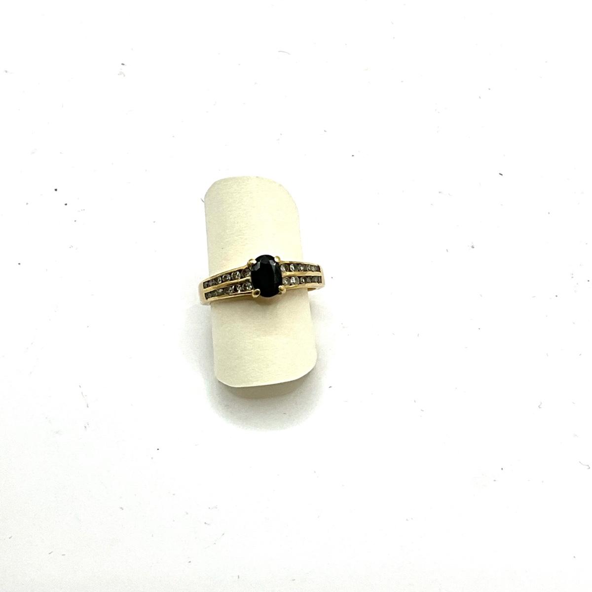 Lot 799 Dark Blue Topaz and Diamond Ladies Ring 14K Size 5.75