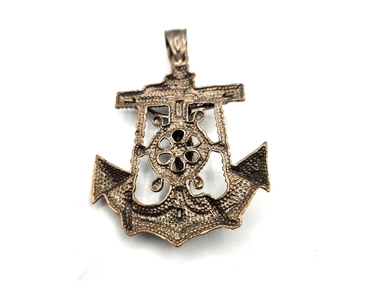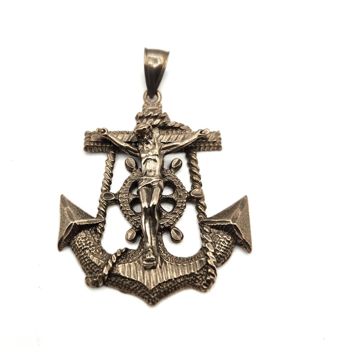 Vintage Sterling Silver (both bail and cross are marked 925) Fisherman's Cross. About 2.5" long and 2" wide. Weighs about 18.2 grams or .64 ounces. Good condition.