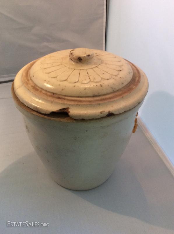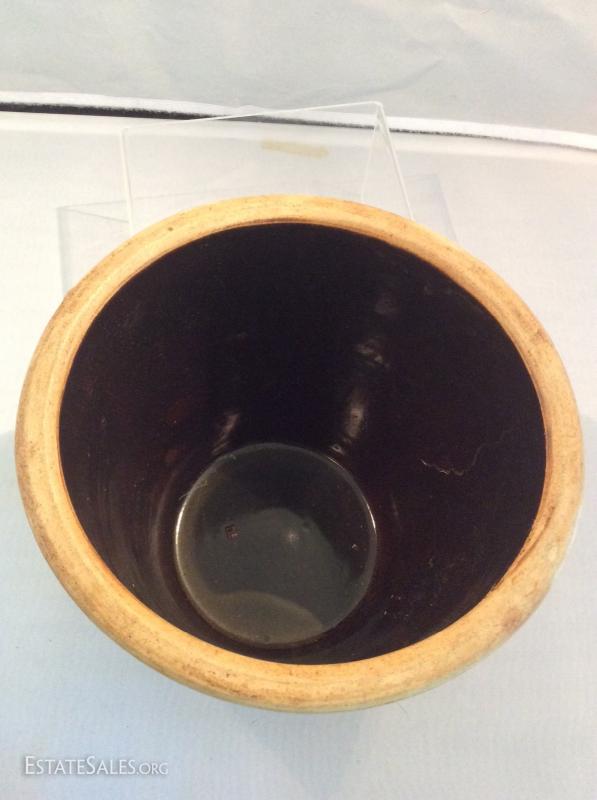This is a great crock in this lot. I especially love the warm patina. No markings some chips as noted in photos.