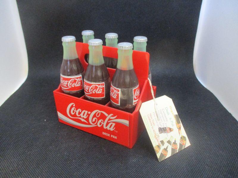 This cute 6 pack has bottles that open at the top and each bottle contains something different (see the tag for what is included). The carton and bottles are made of plastic and the carton is 4" x 2.75". All of the items are in a "new" condition.