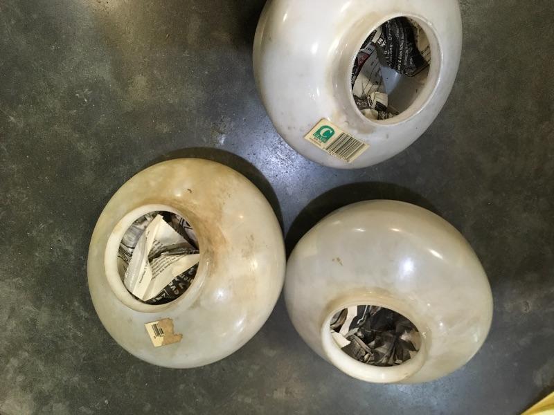 Lot 8 Antique white glass globe shades. (3 in total) Each measures 9" in diameter