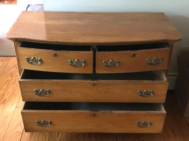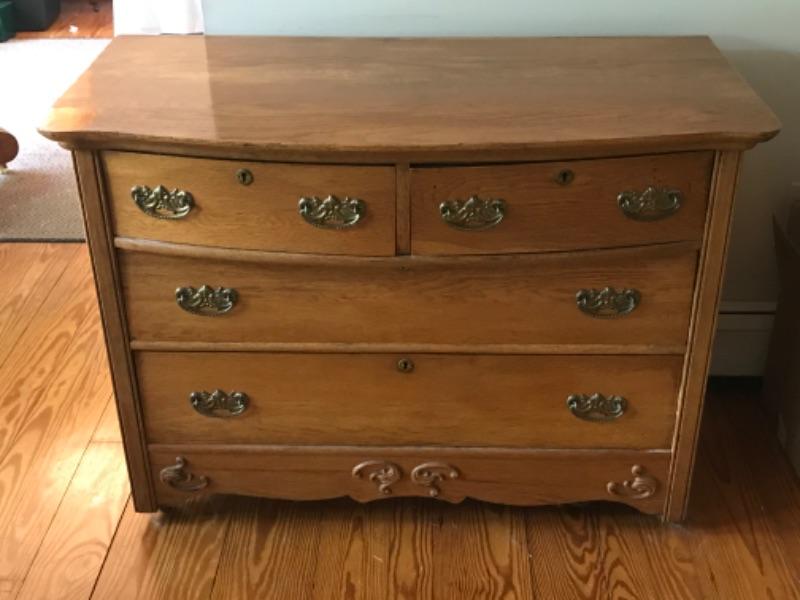 Four drawer dresser. Measures 2’8” high 3’8” wide and 1’10” deep. Please bring help for moving