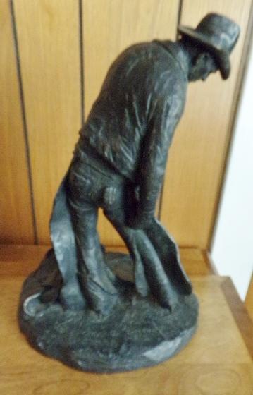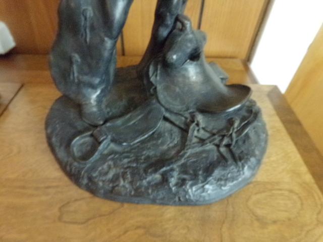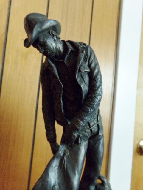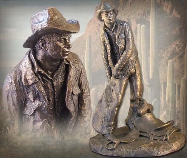 "A long and dusty day ends. Weary, hungry and satisfied, a cowboy comes home. This handmade sculpture by Michael Garman honors the American heroes of the Wild West who want nothing more than home and hearth."