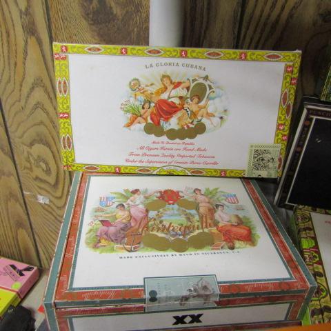 GREAT VARIETY OF VINTAGE CIGAR BOXES IN GOOD SHAPE