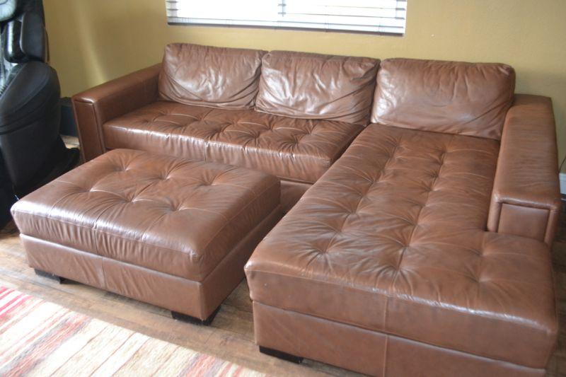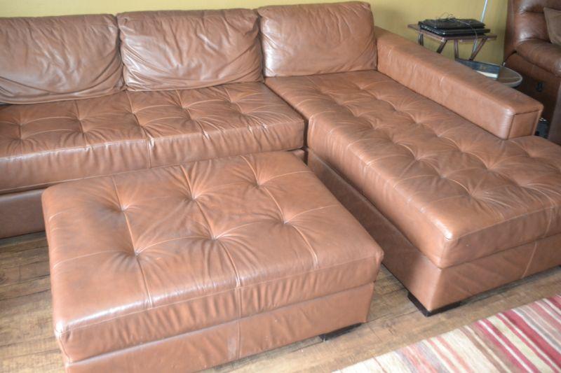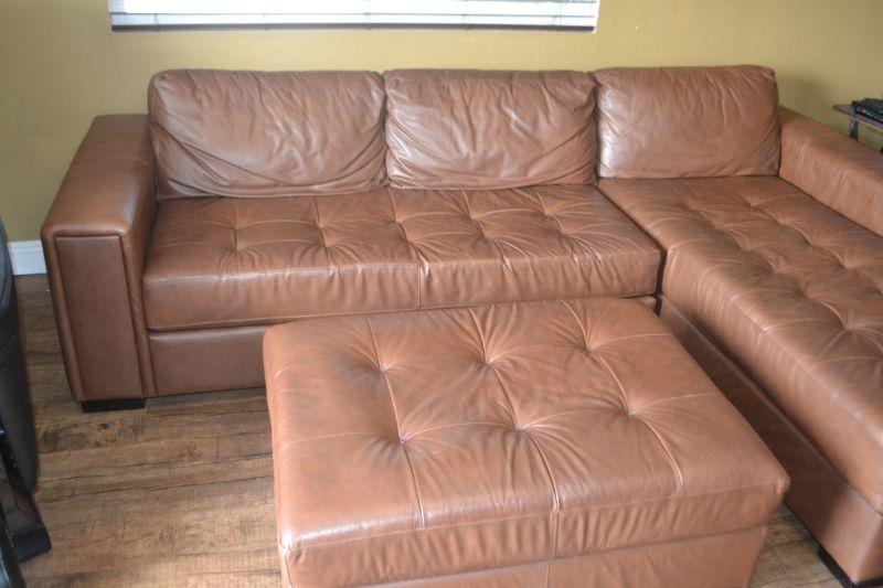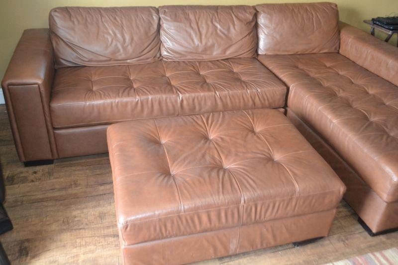 LOT 8 LEATHER SECTIONAL AND OTTOMAN