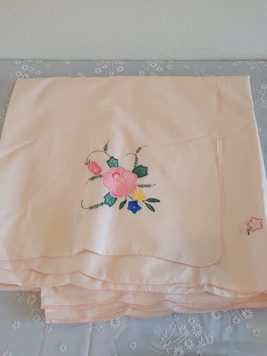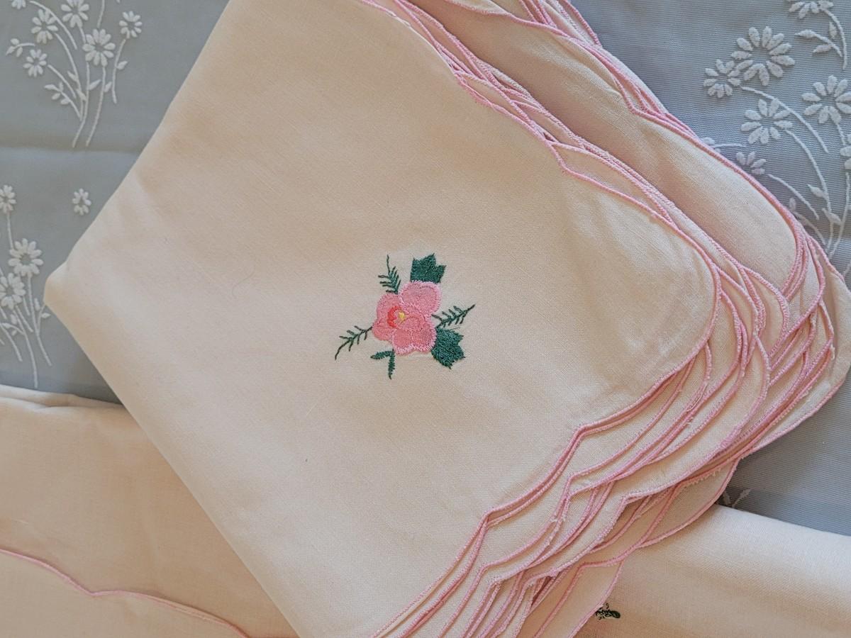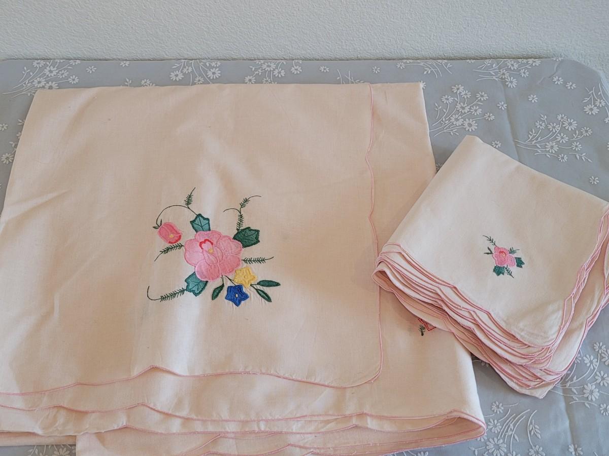 Lot 8: Large Rectangle Rose Tablecloth and 12 Napkins