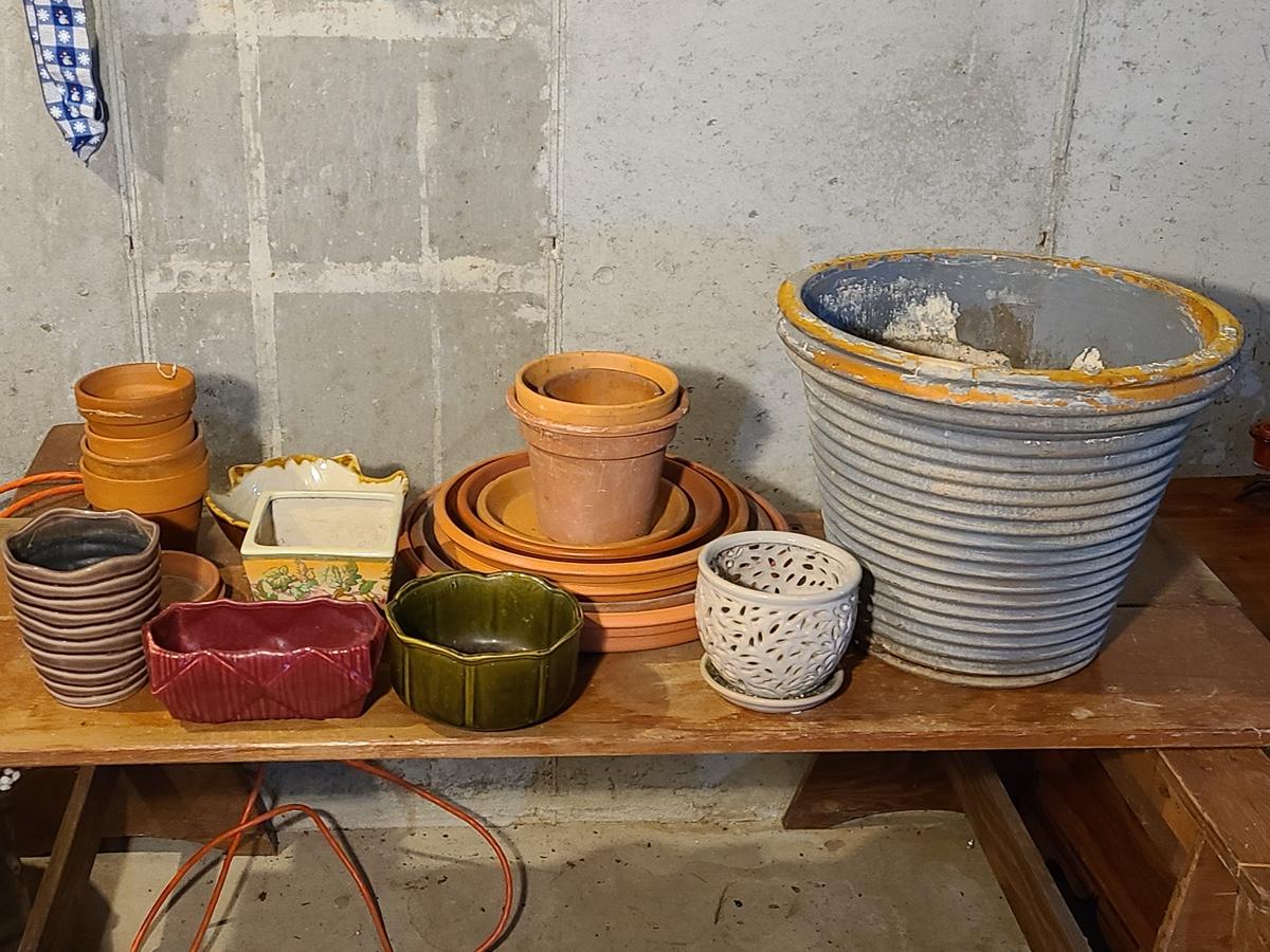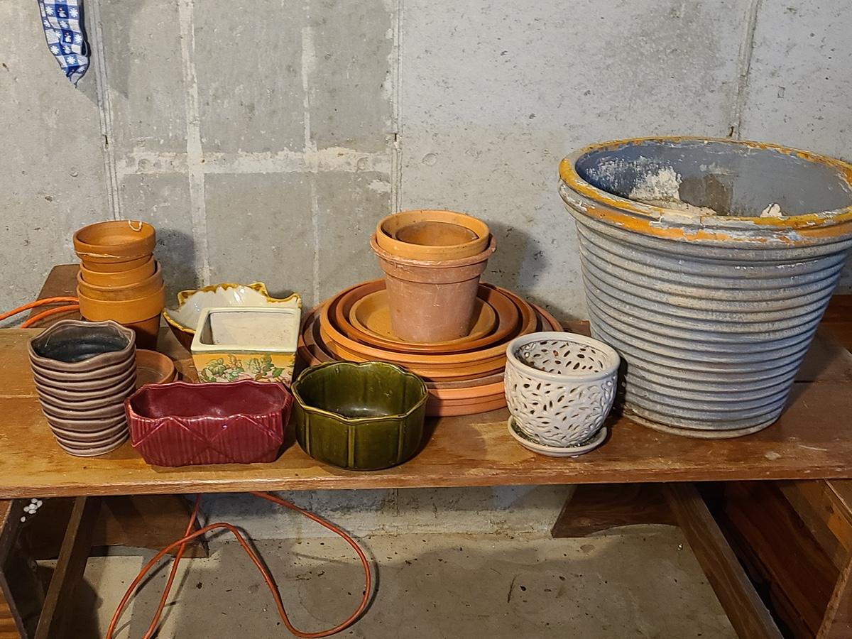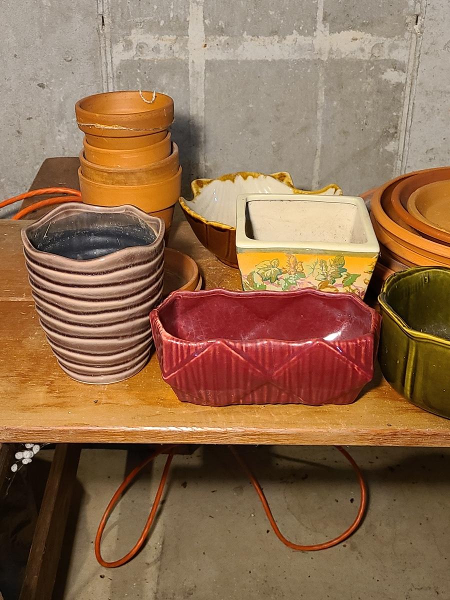 Fun lot for the green thumb. Large grey piece is plastic/board. Please see all pictures as they are the best representation of the items in the lot, the condition of the lot, and will show measurements if taken. If purchasing furniture you must be able to move yourself with your own help, and truck. .