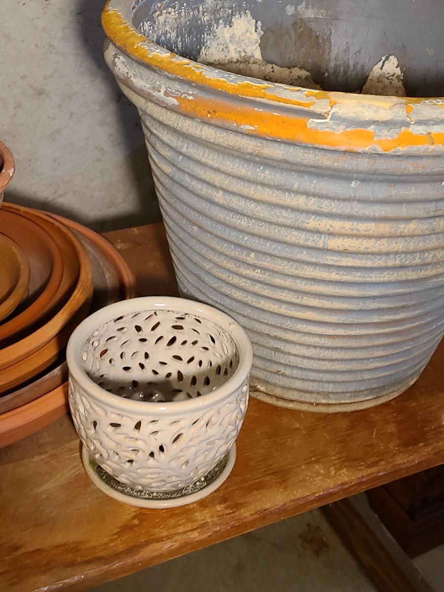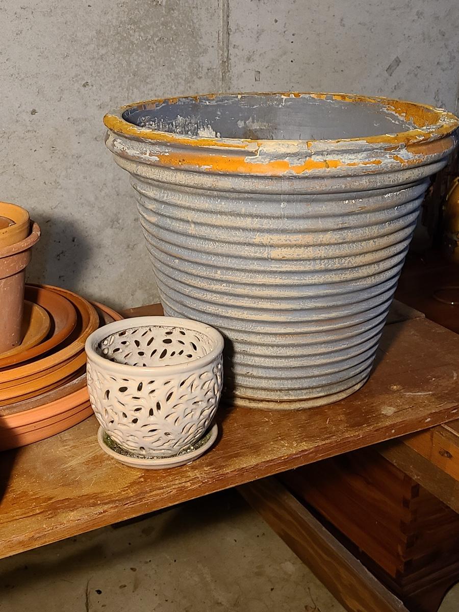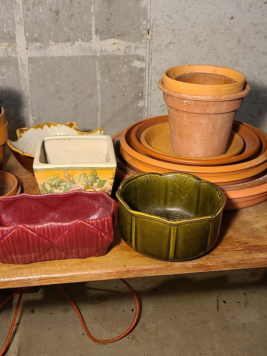 Fun lot for the green thumb. Large grey piece is plastic/board. Please see all pictures as they are the best representation of the items in the lot, the condition of the lot, and will show measurements if taken. If purchasing furniture you must be able to move yourself with your own help, and truck. .