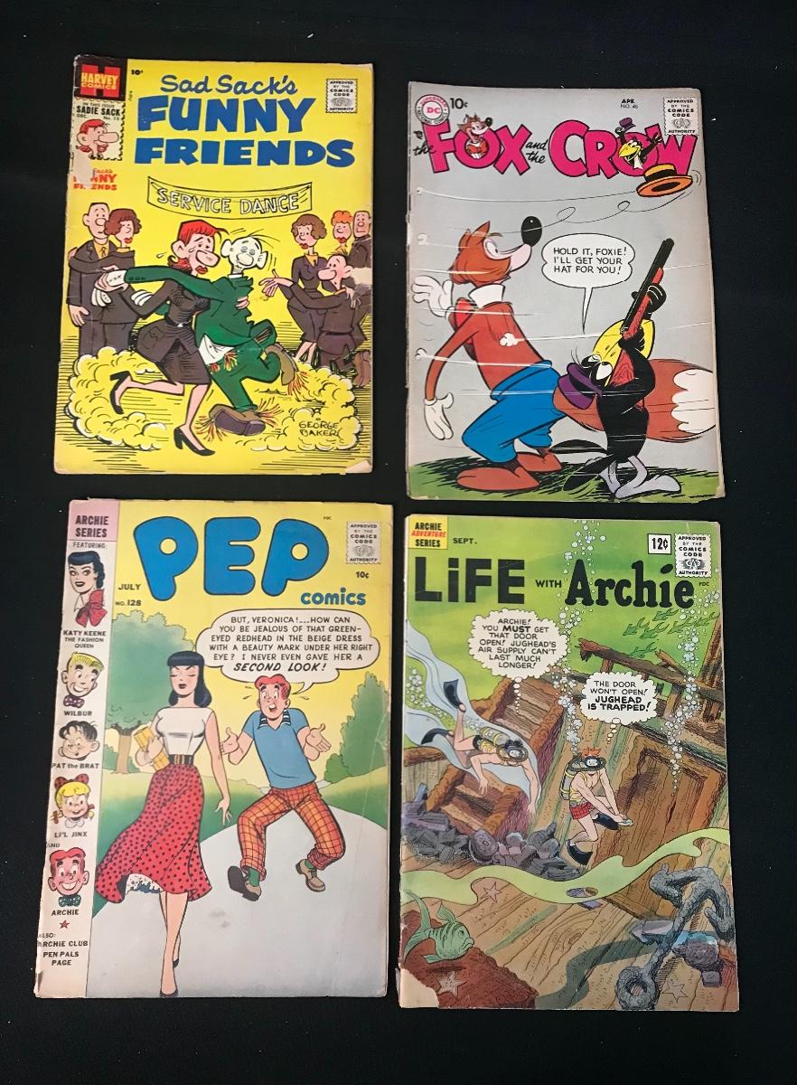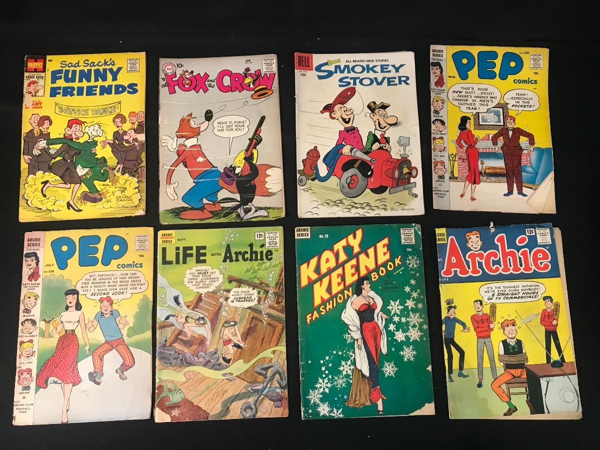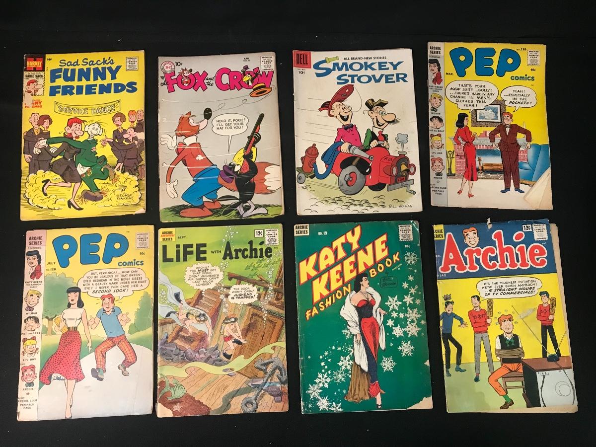 Collection of vintage comic books including Archie, Pep and more. Please see photos. The pictures show condition, measurements if taken, and what is included in the lot. Due to the large amount that we photograph and the time frame, we are not always able to take measurements. All items unless noted, are pre-owned and have been used. If you purchased furniture, you must bring help. We do not allow one person to carry large furniture out on their own. Bring help, tools and a truck for the safety of our client’s homes, and your personal safety. Company policy. Thank you.