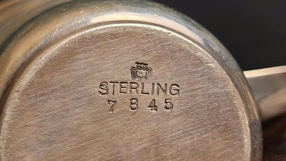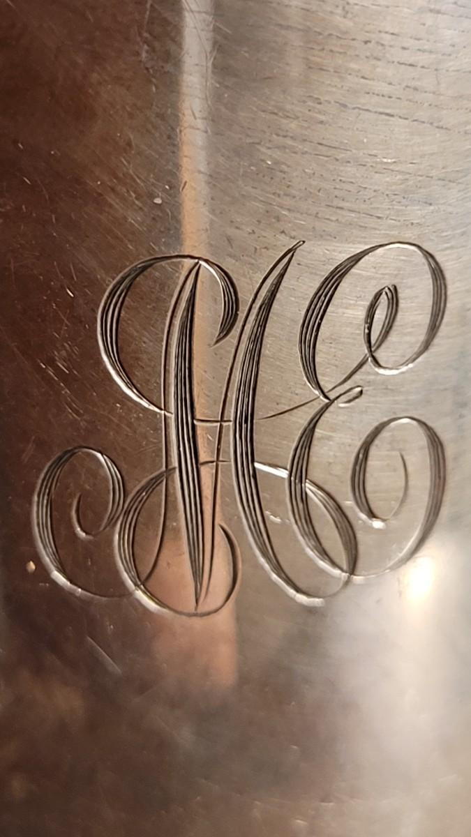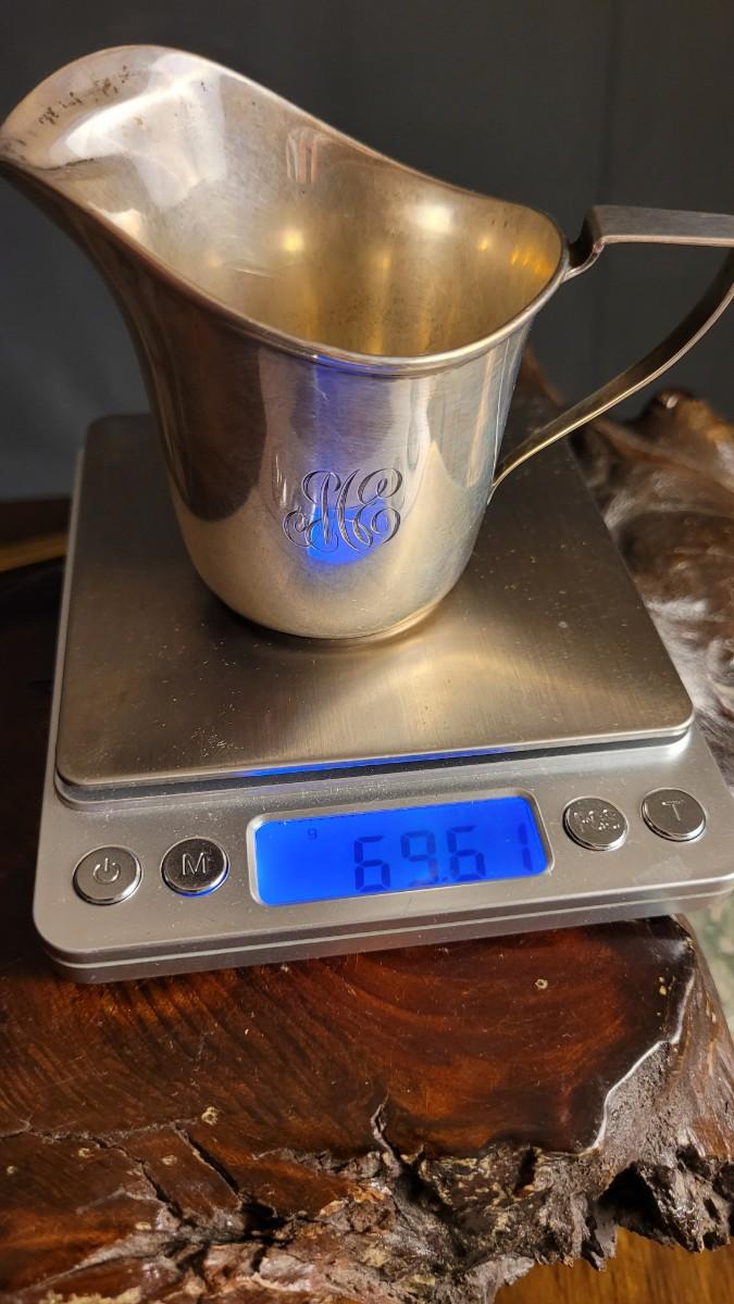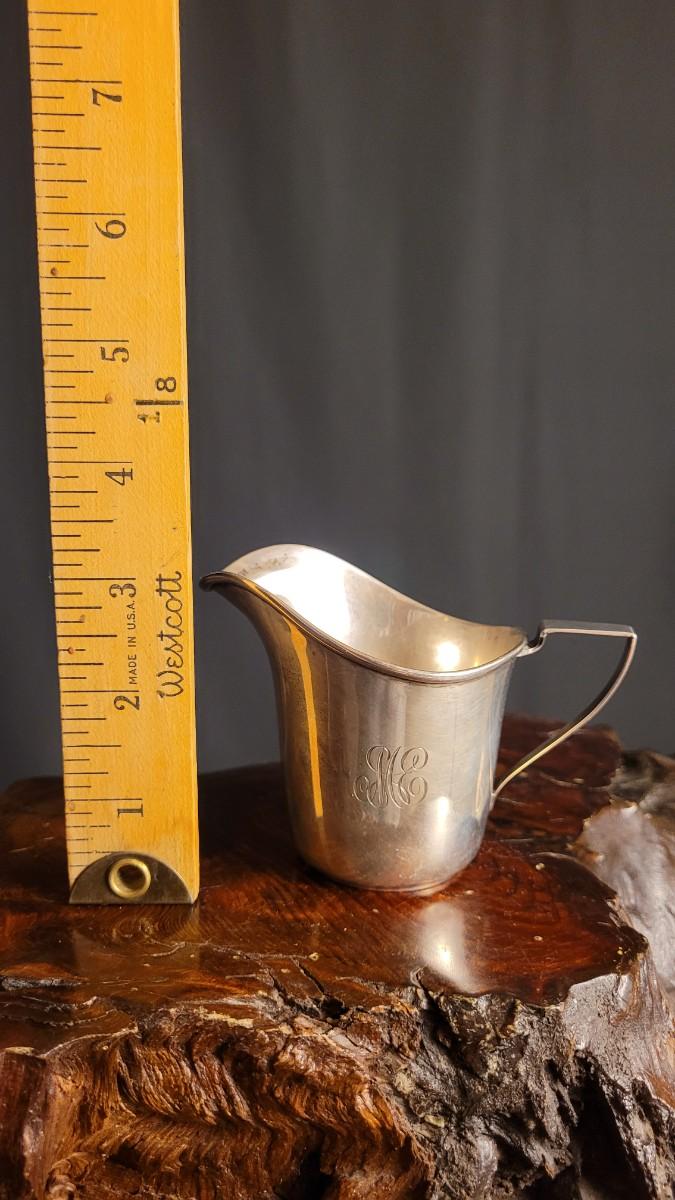 This Antique/Vintage Sterling Silver Creamer features a fancy Cursive Monogram. Does not appear to have any noticeable dings on inspection.