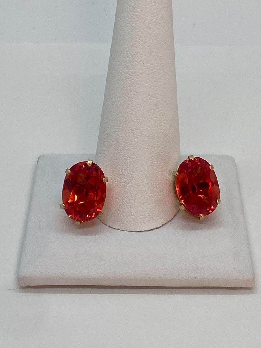 Lot 8: 14k RGE Padparadscha Orange Sapphire Pierced Earrings by Rare Gems of the Earth Corp.