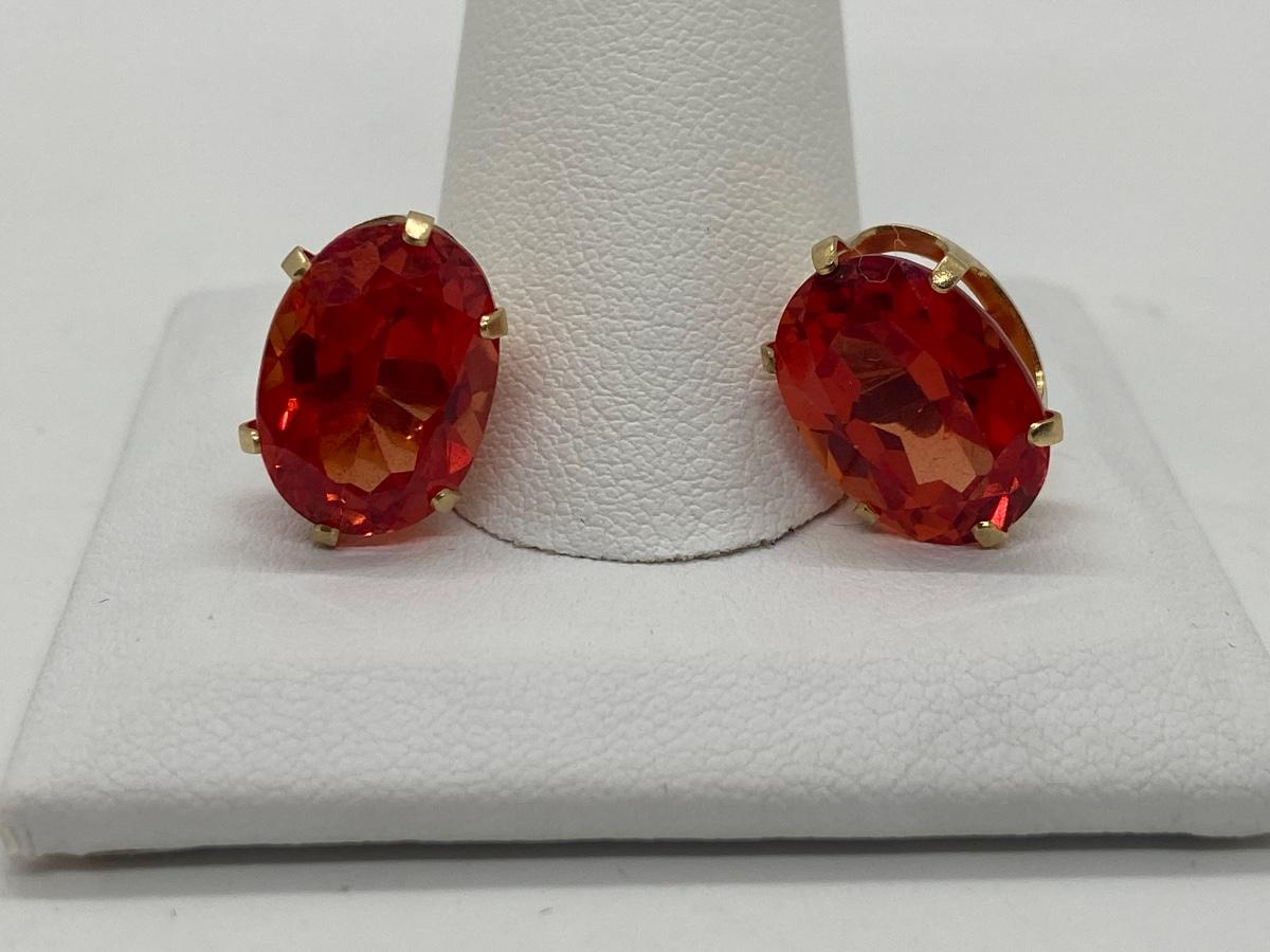 Padparadscha earrings total weigh 4.6 grams. The pictures show condition, measurements if taken, and what is included in the lot. Due to the large amount that we photograph and the time frame, we are not always able to take measurements. All items unless noted, are pre-owned and have been used, and are untested. Thank you