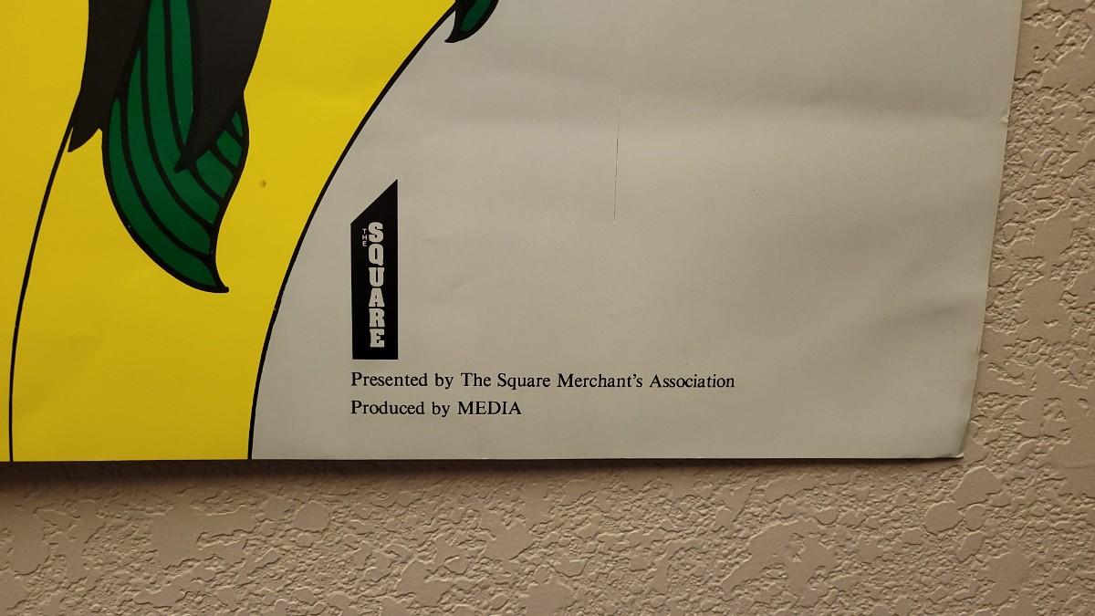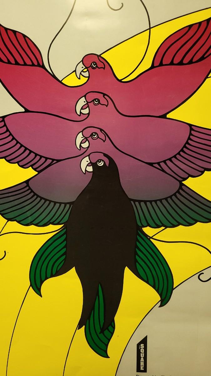 This lot features a wonderful vintage Undated (Circa late 70's, early 80's) by what appears to be JOHN SORBIE but is not accredited. The yellow rainbow background with bird opening it's wings makes for a delightful poster that will brighten any interior space. 19" x 27.75".