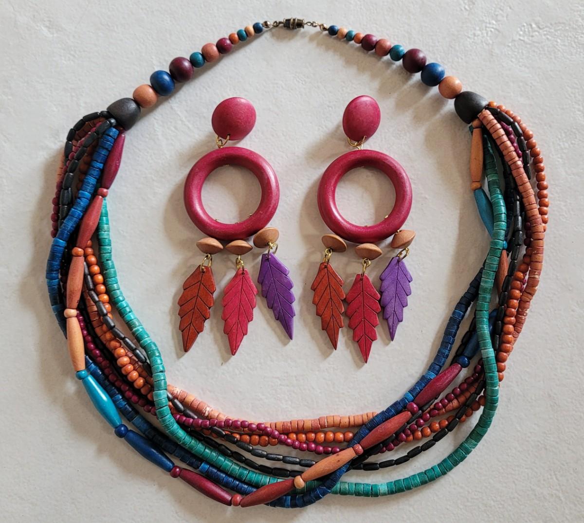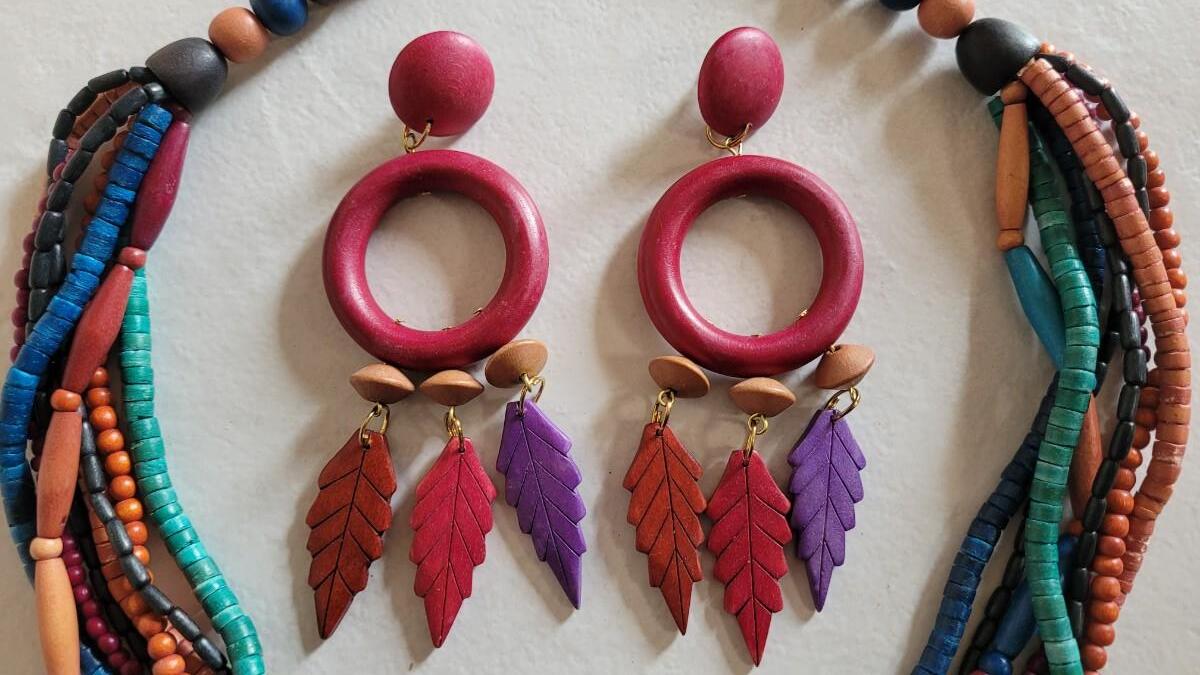 This vibrant, natural, lightweight wood jewelry has a silky texture creating an ease when wearing.