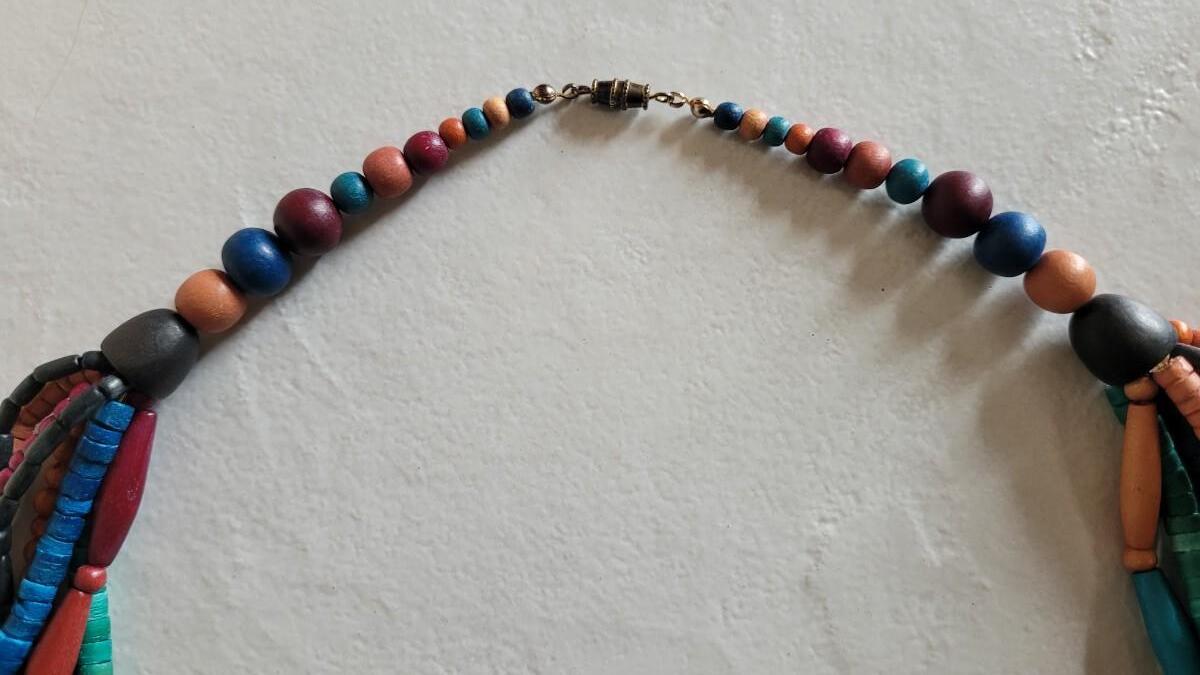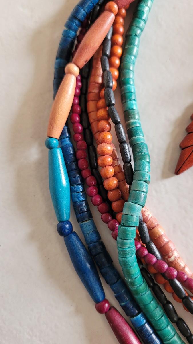Lot 8: Vintage African Wood Beaded 8 Strand Necklace with Wood Earrings