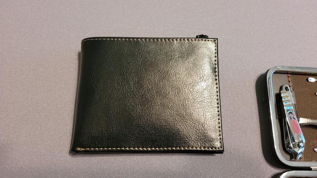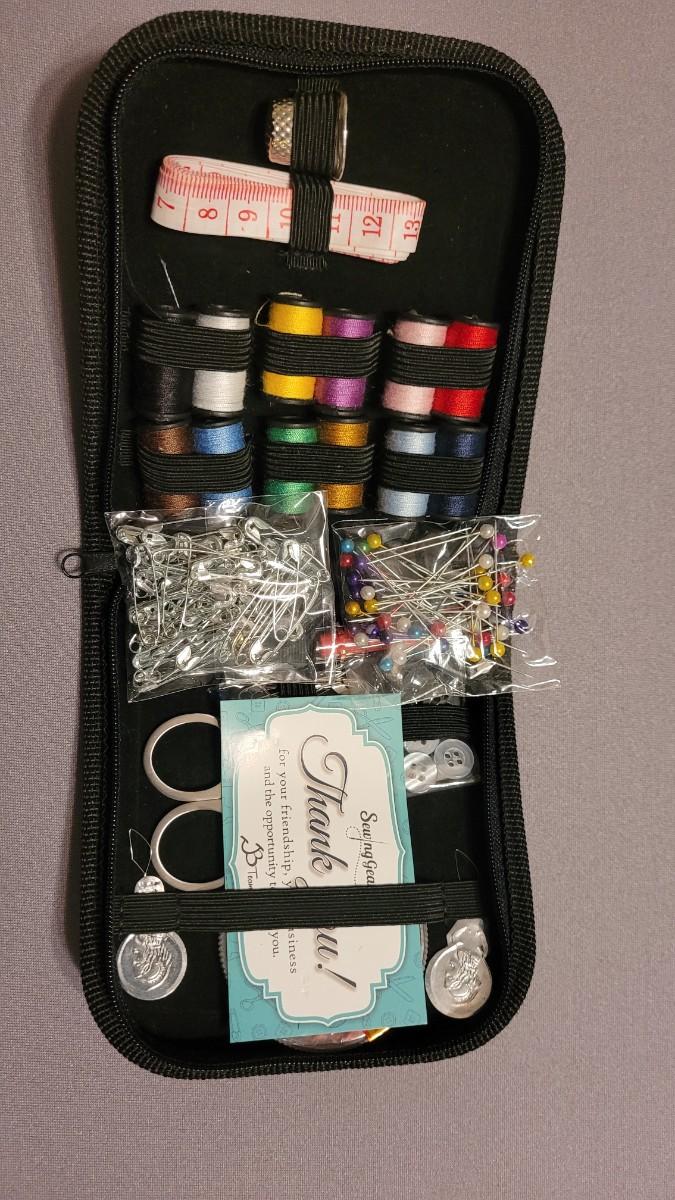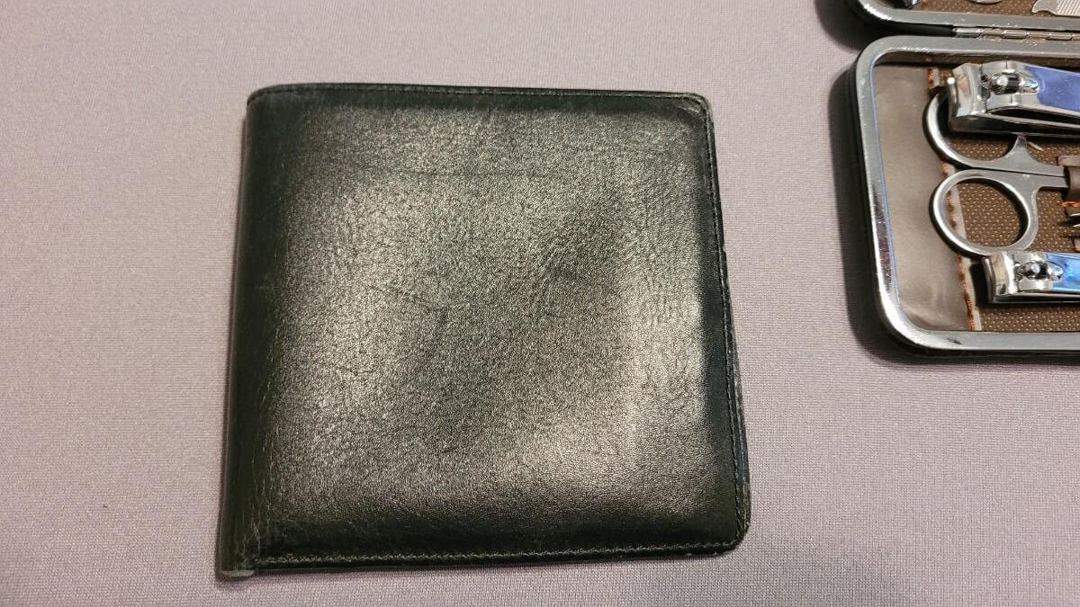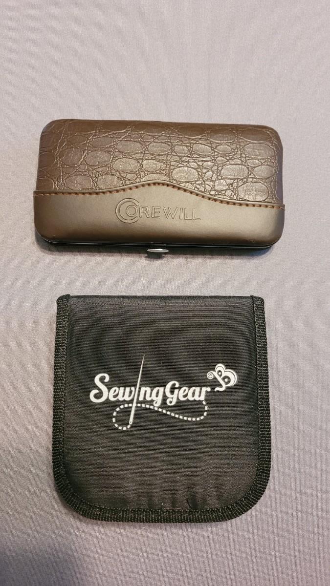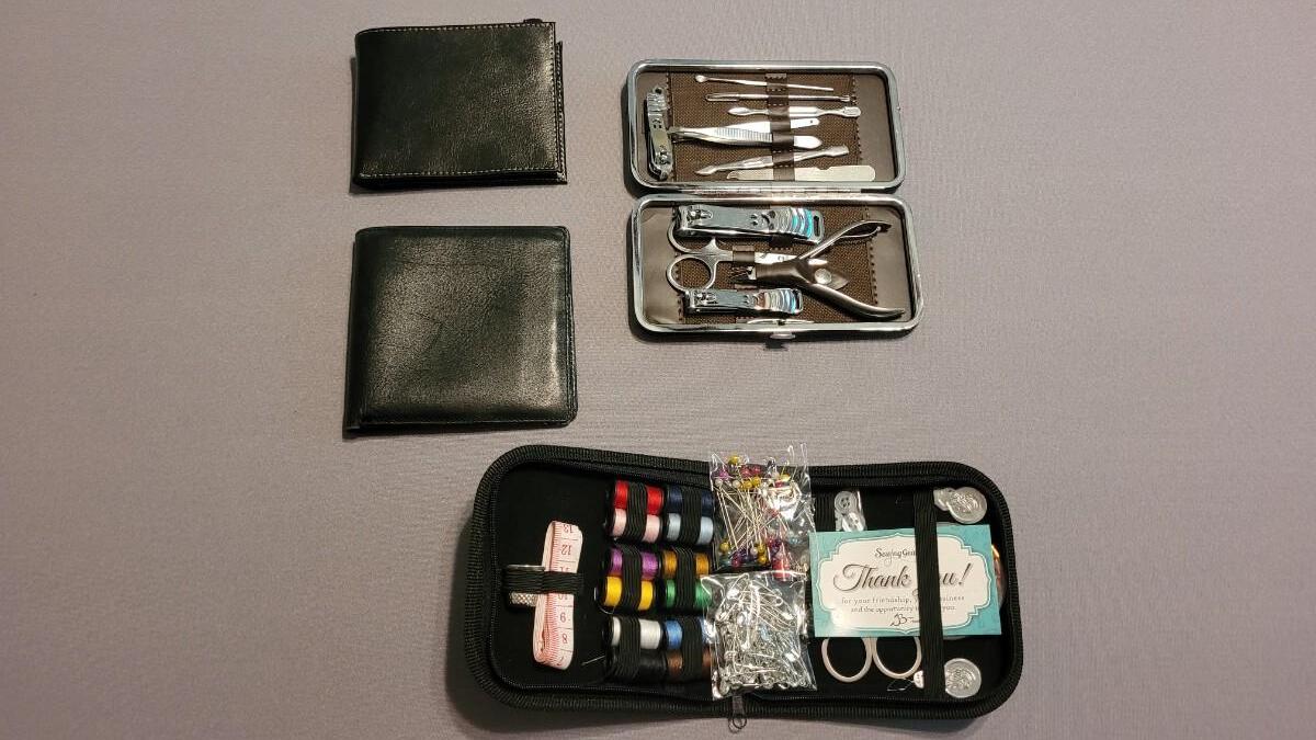 Lot 8: (2) Men's Leather Wallets, Grooming Kit and Sewing Kit