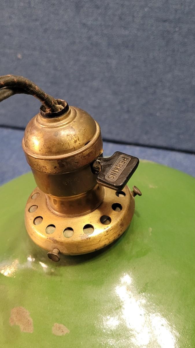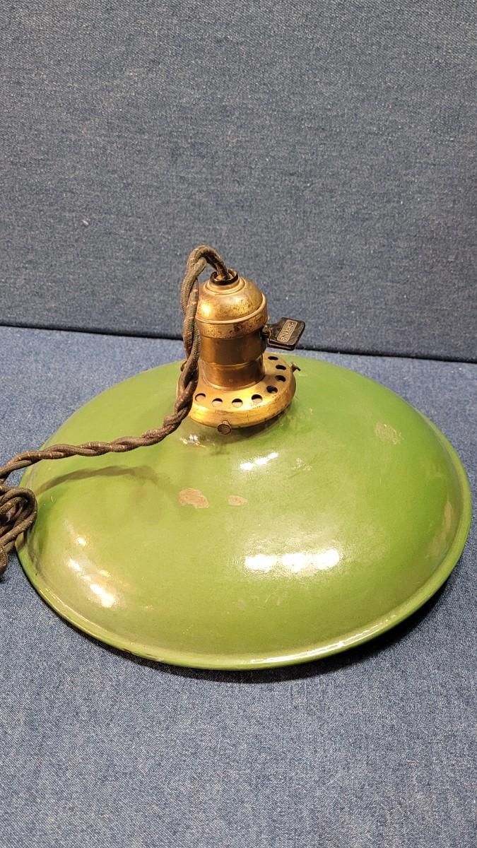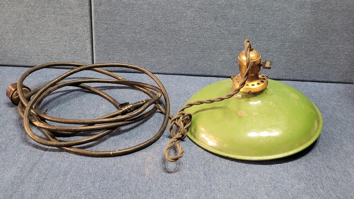 Lot 8: Vintage Green & White Enamel Hanging Light