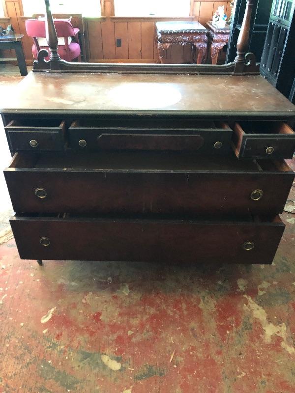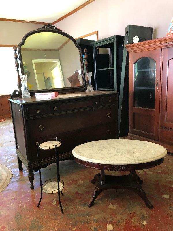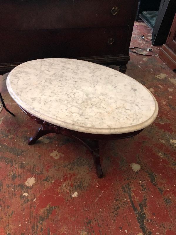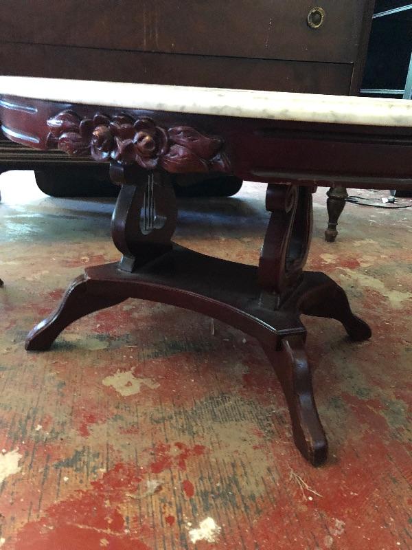 LOT 8 - Antique: Skate Shoe Marble Top Coffee Table, Rare 5-Drawer Dresser, Etc