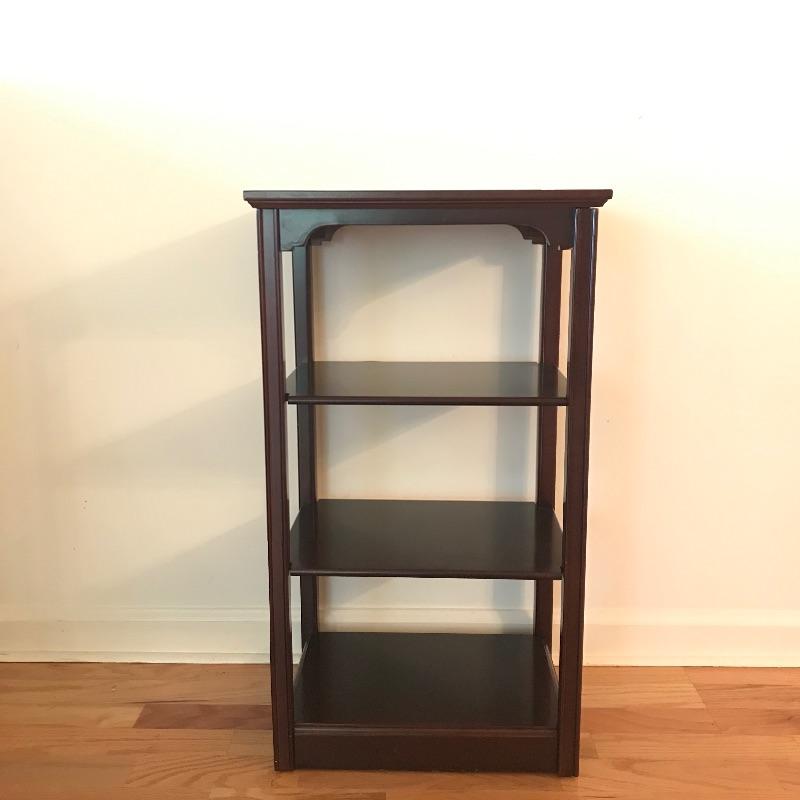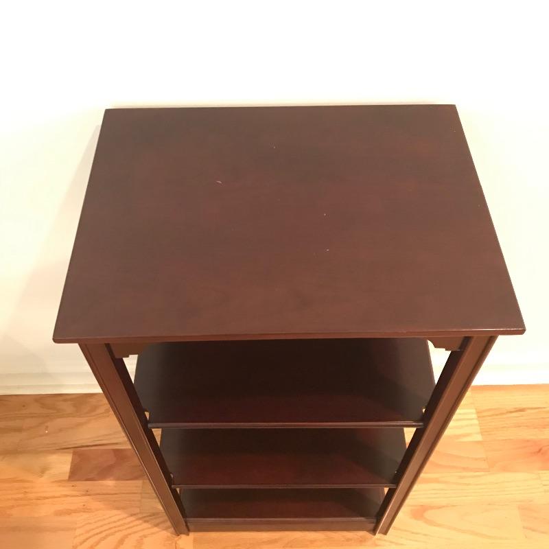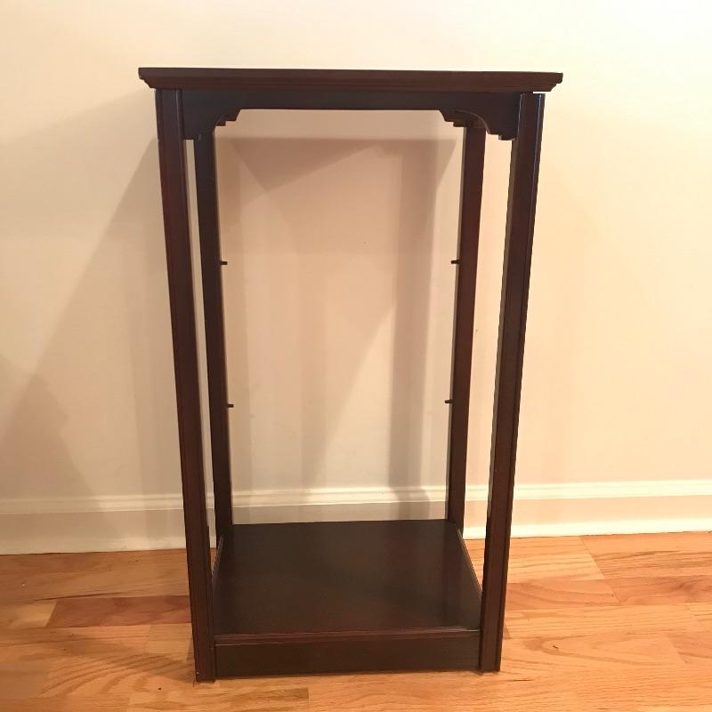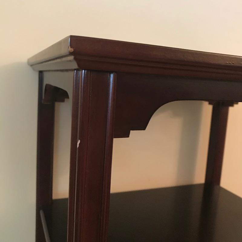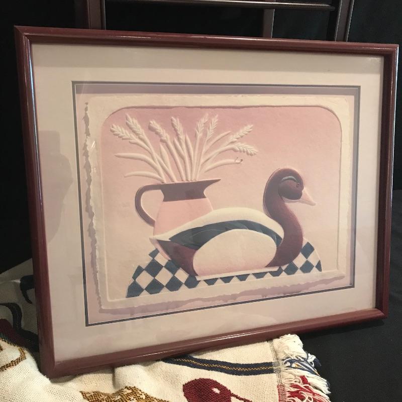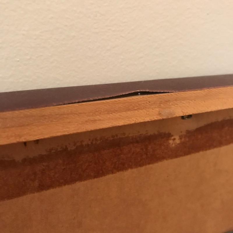 Perfect trio to add a splash of personality and color to your living room. First, another illusion style art print in a wooden frame. The art appears to have multiple layers at a glance. Upon further inspection, art and matting are all one print. The frame is wooden and has a tiny portion warped at the top, again, only noticeable when looking for it. We’ve included a nice 100% cotton couch throw and three tiered wooden table. The table is from the Bombay Company and appears to be solid wood, measuring 15” x 11” x 28.25”. The two shelves are set on dowels and all can be completely removed if you prefer. See photos. Local pick up only.