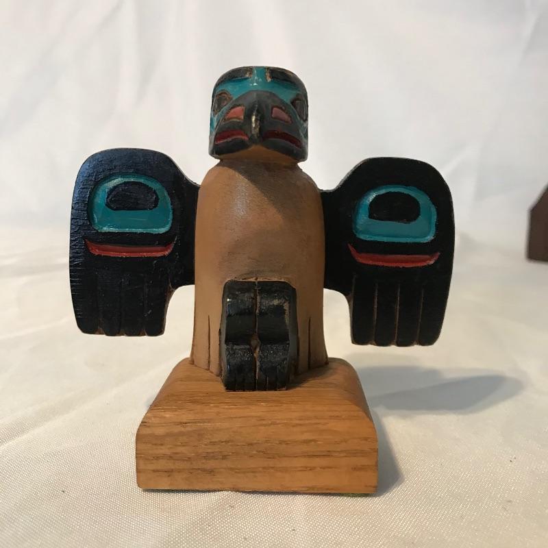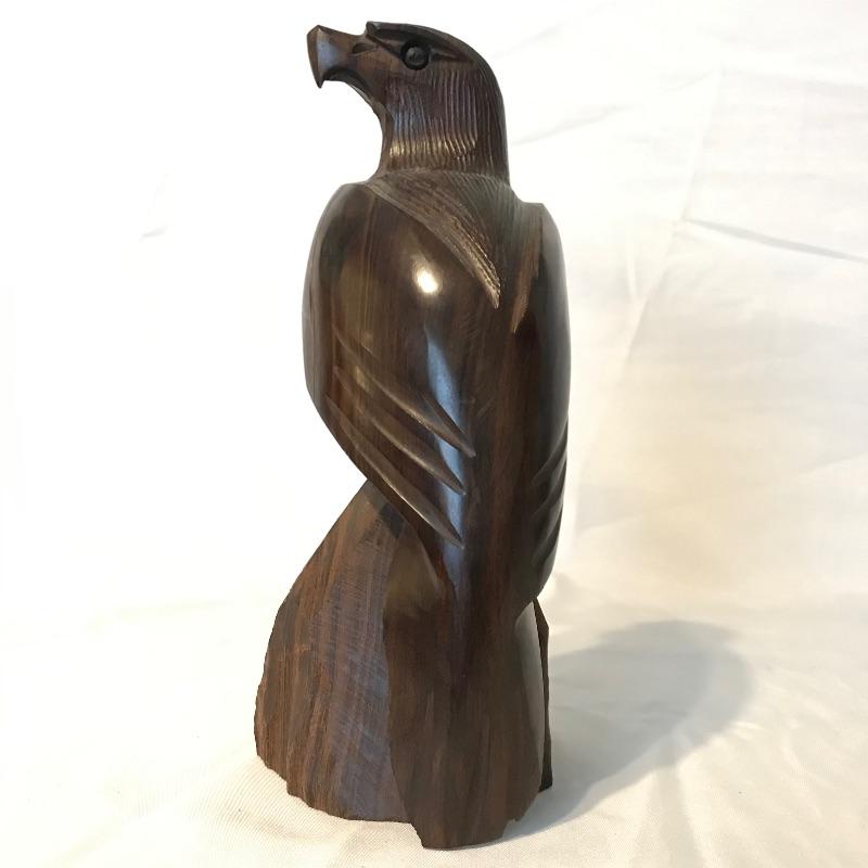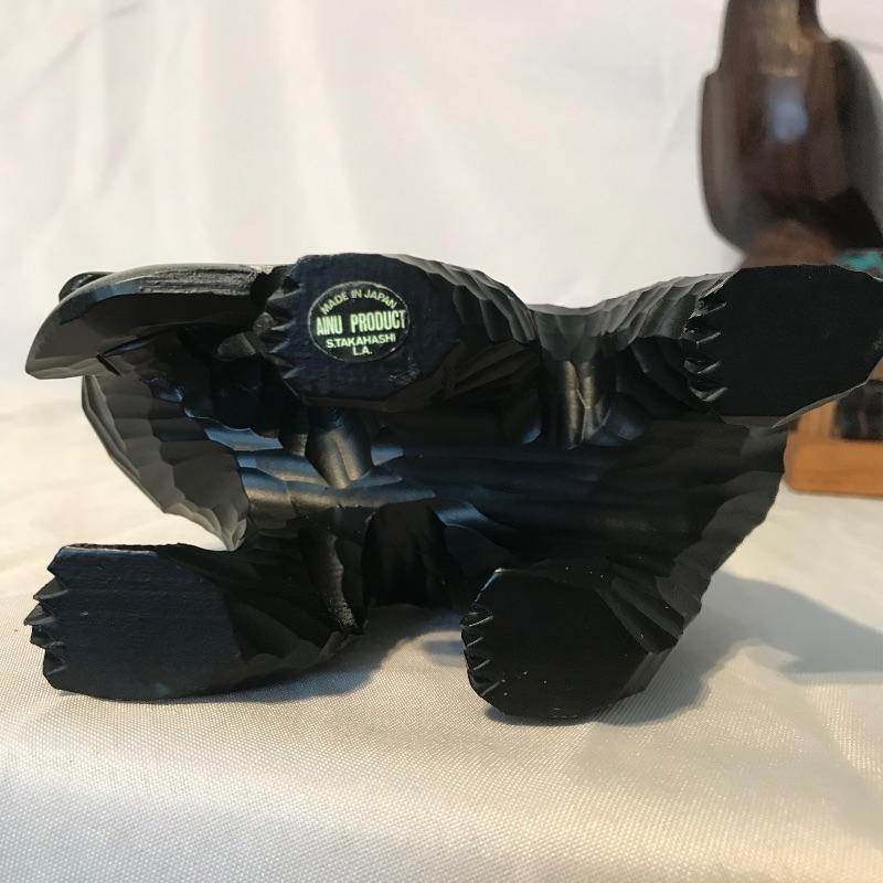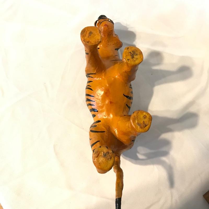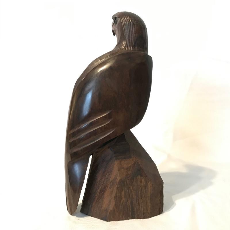 Outstanding collection of carved creatures. All statuettes are painted with the exception of the hawk that has a heavy wooden stance and smooth dark stain. Two have stickers stating place of origin. The hawk is a heavy wooden material and the tiger is a painted paper mache like material but sturdier. The rest appear to be made with a sturdy middleweight wood. The tiger has a small crack in the base of the tail, but it does not affect the tail’s integrity. See 2nd to last image. Shipping available.