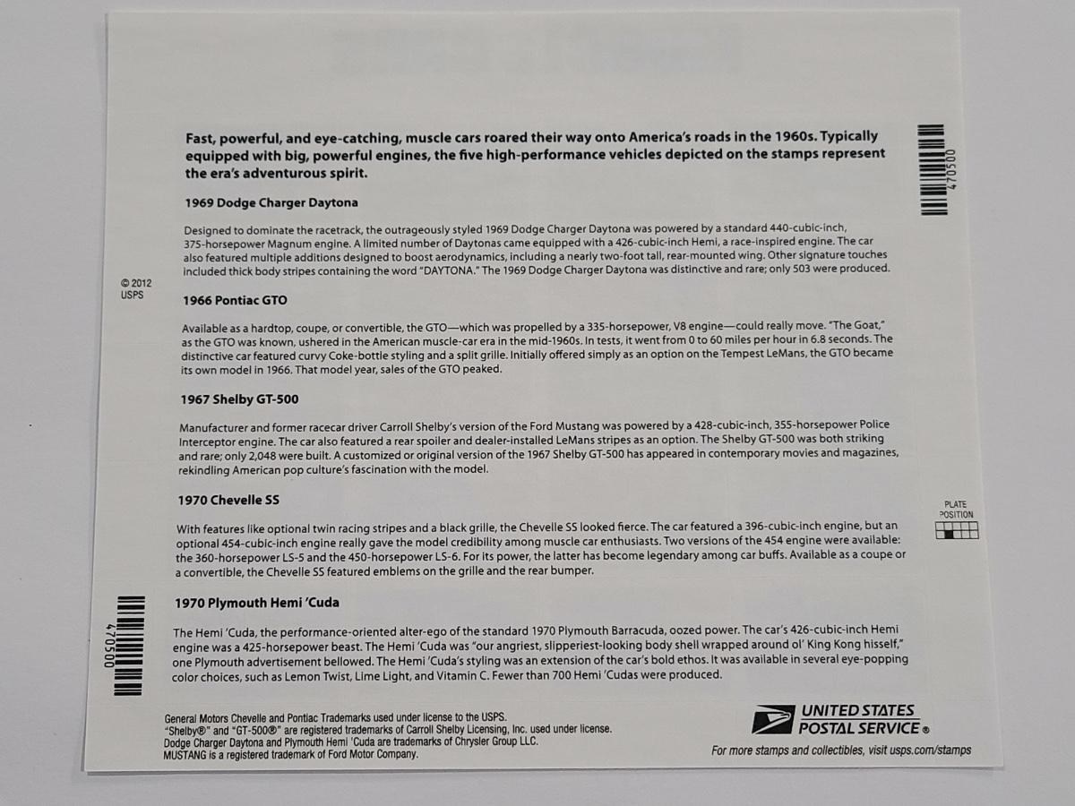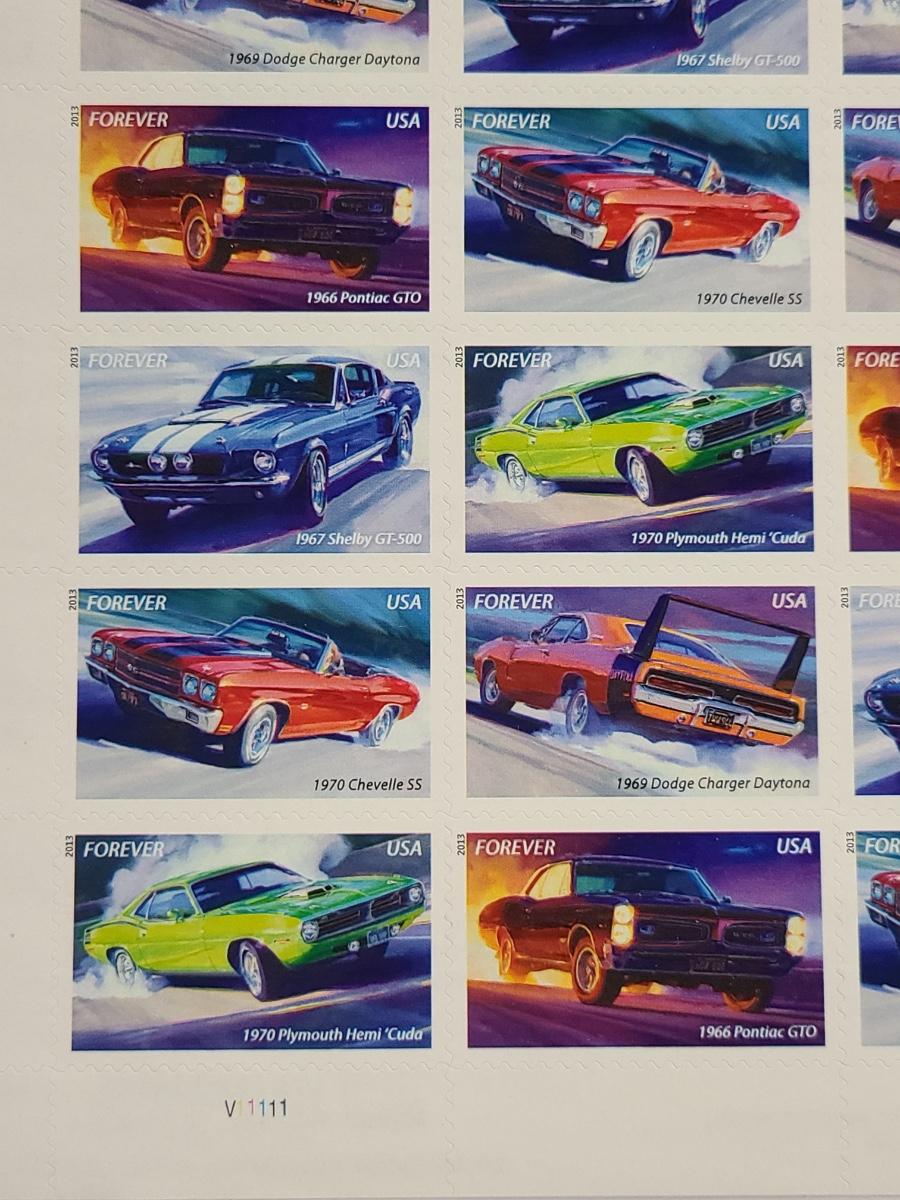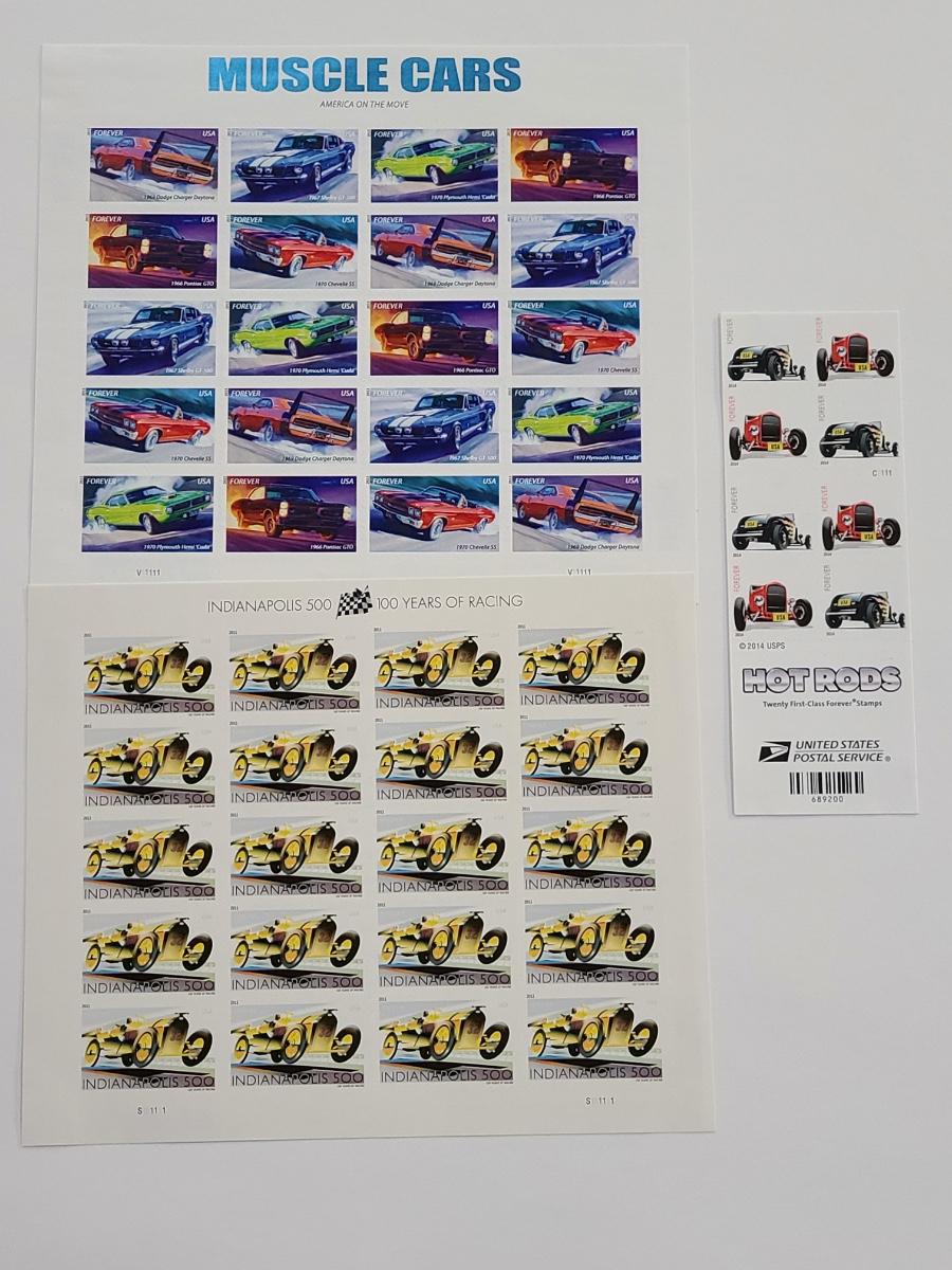 Lot 8: Forever Stamps: Hot Rods, Muscle Cars, and Indianapolis 500 (60 Stamps)