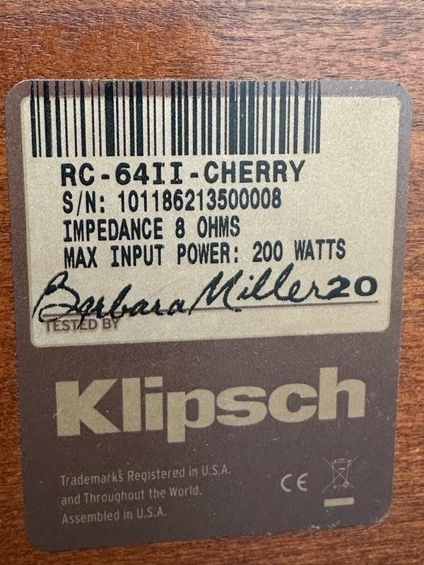 Lot 8 Klipsch RC - 64II -CHERRY speaker