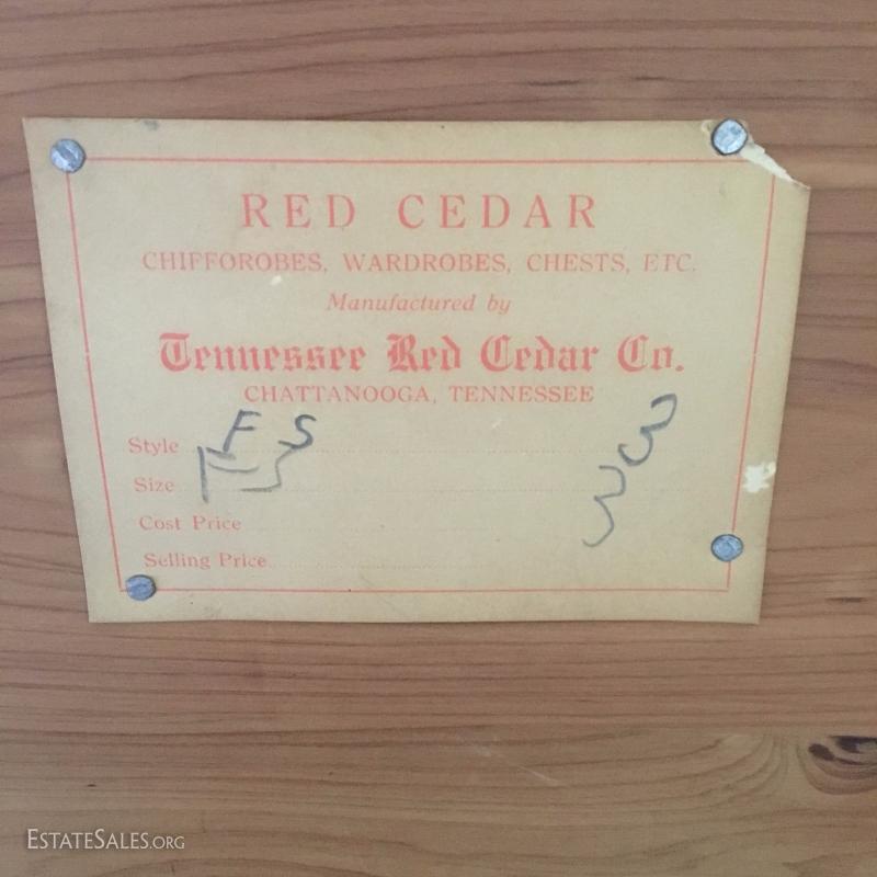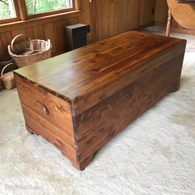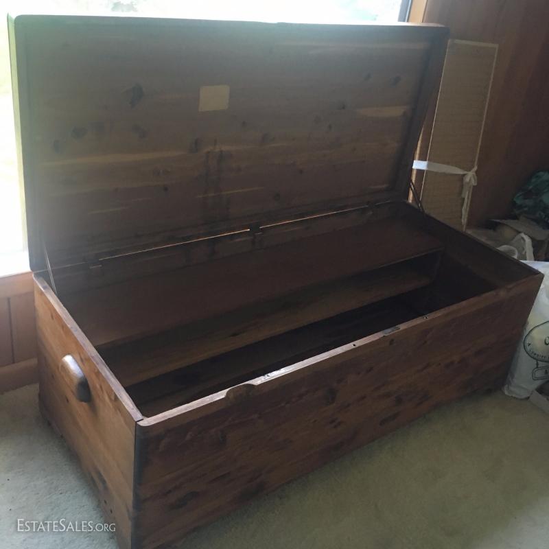 Tennessee Red Cedar Truck. Nice big size with insert. Some scratches and watermarks typical with age. No key. See photos. 54"l x 24"w x 21" h