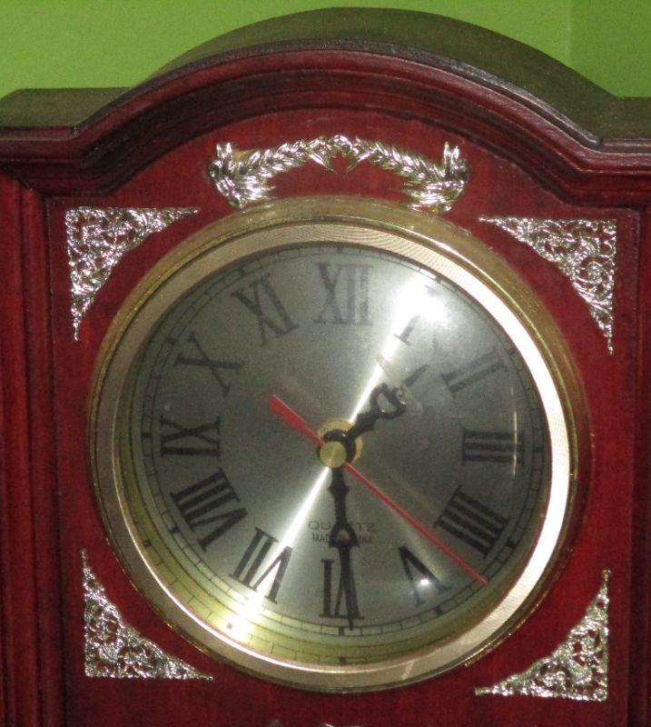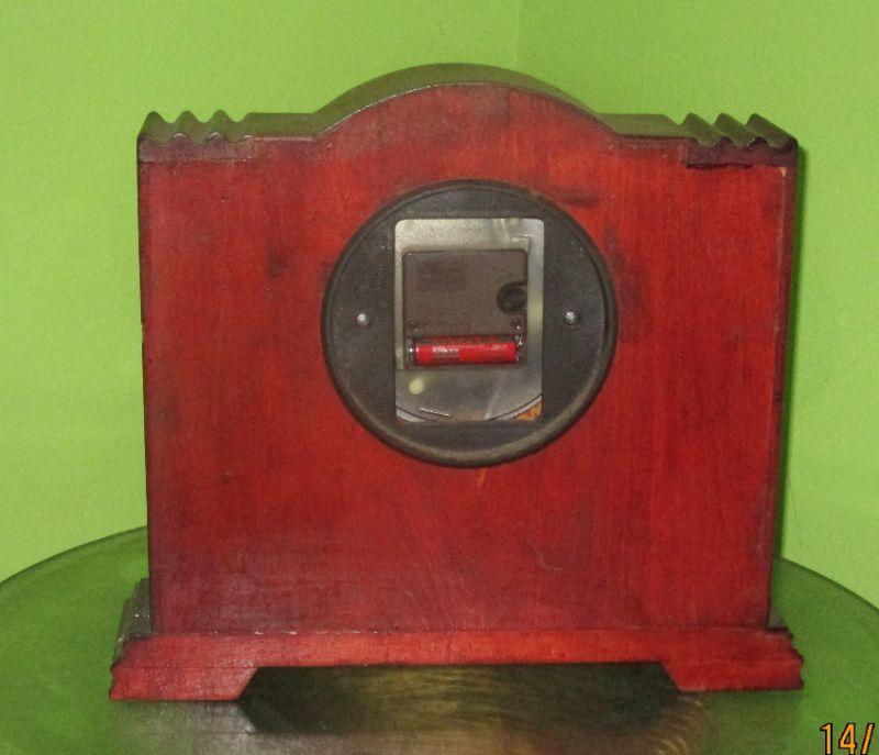 While this is a battery operated clock, it has the look of a vintage plug-in clock. The case is wood and it is 13" x 11.5".