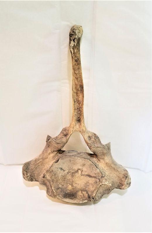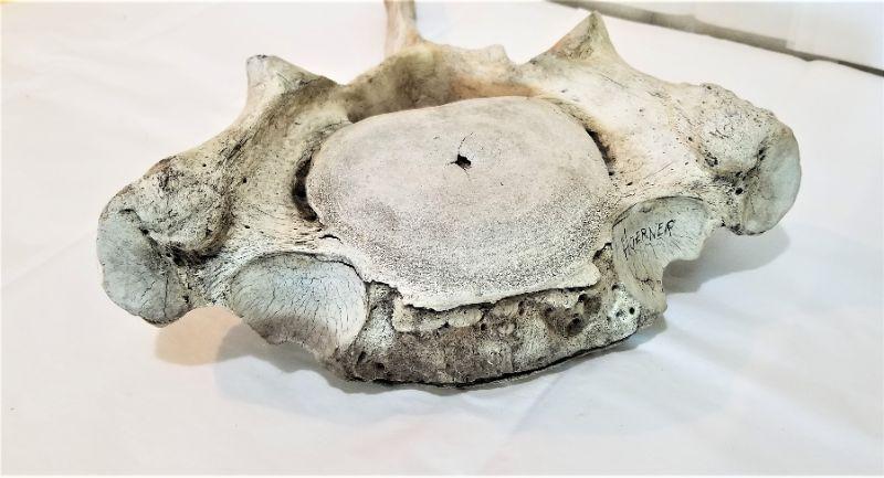 From the size of this fossilized vertebrae, whatever it belong to was BIG. Measures about 16.5" x 11". The previous owner, an orthopedic surgeon, put his last name on it in an unobtrusive spot. A definite oddity.