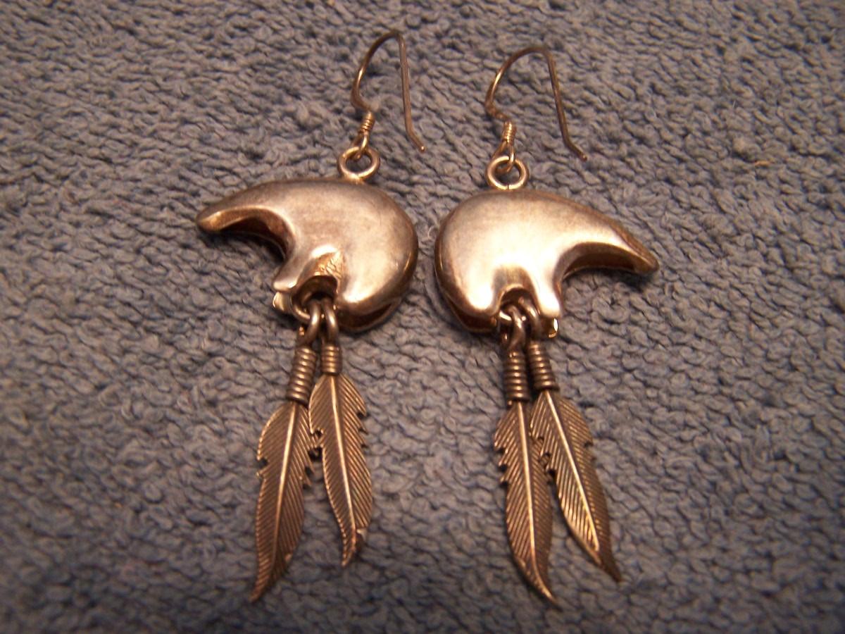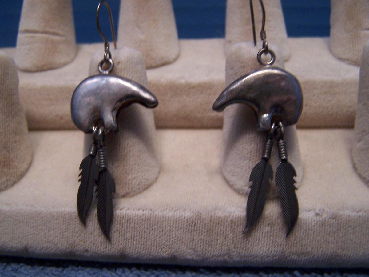 WONDERFUL NATIVE AMERICAN SILVER EARRINGS!!! THE BEAR EARRINGS ARE 1 3/4'' LONG... 23.5GR TOTAL WEIGHT... LIGHT WEAR...