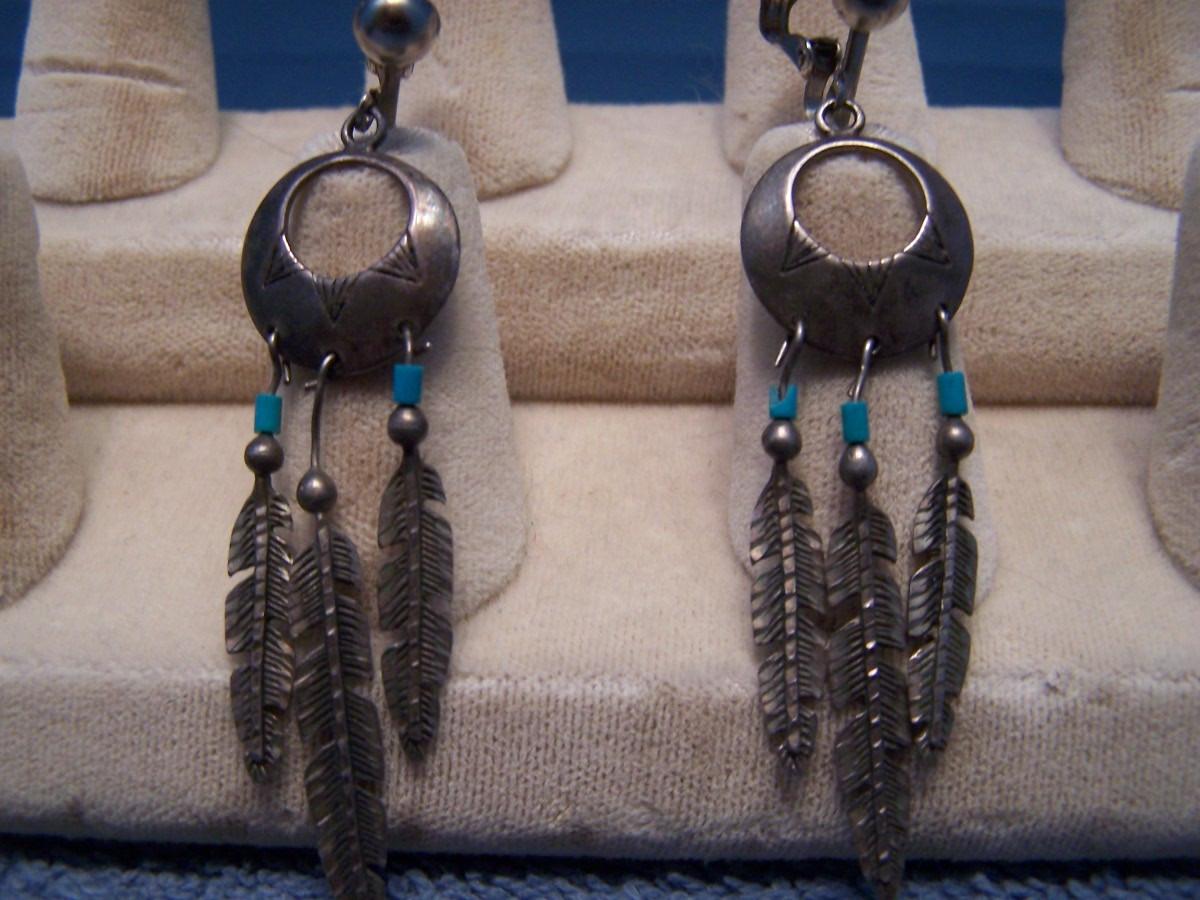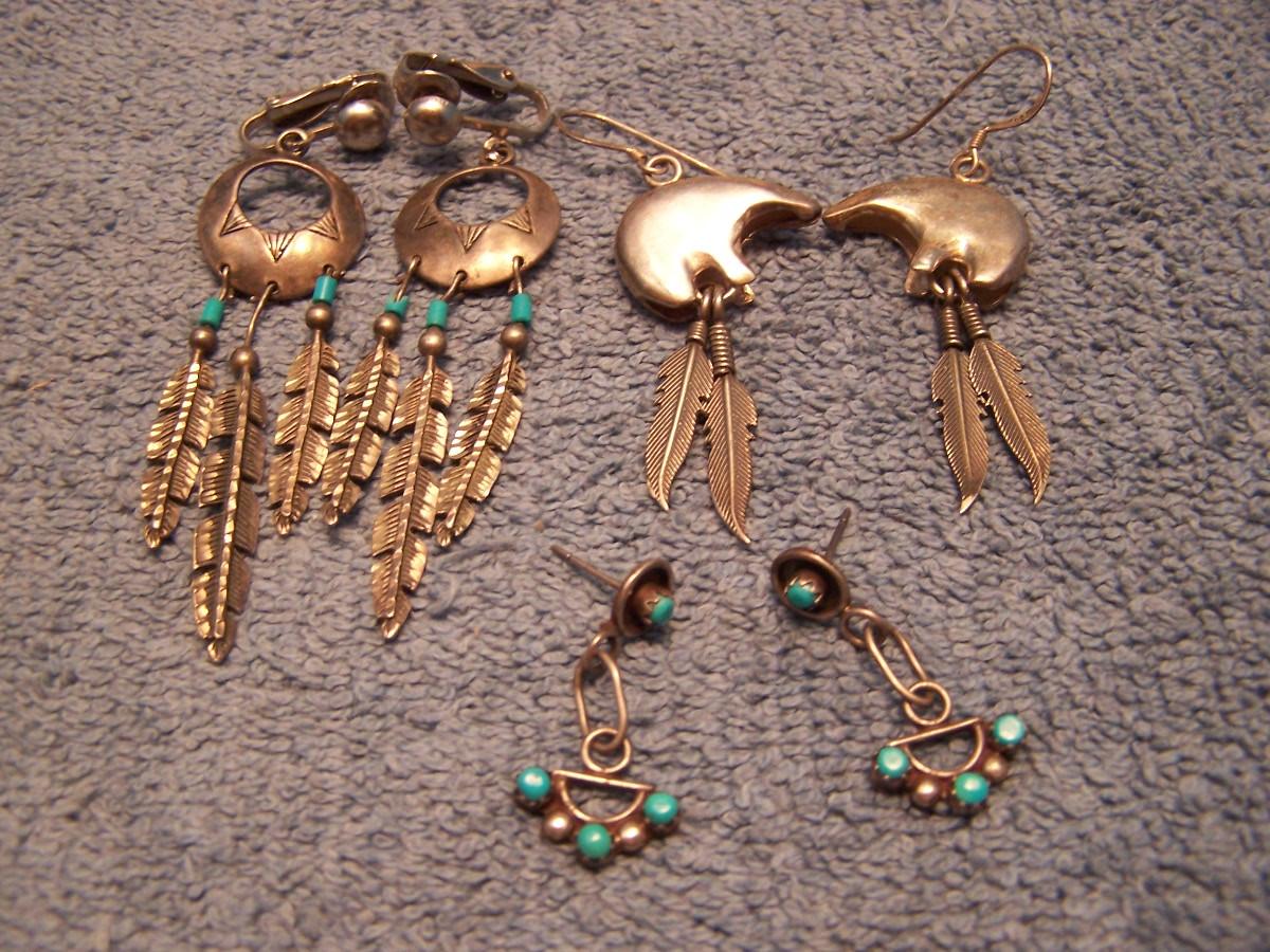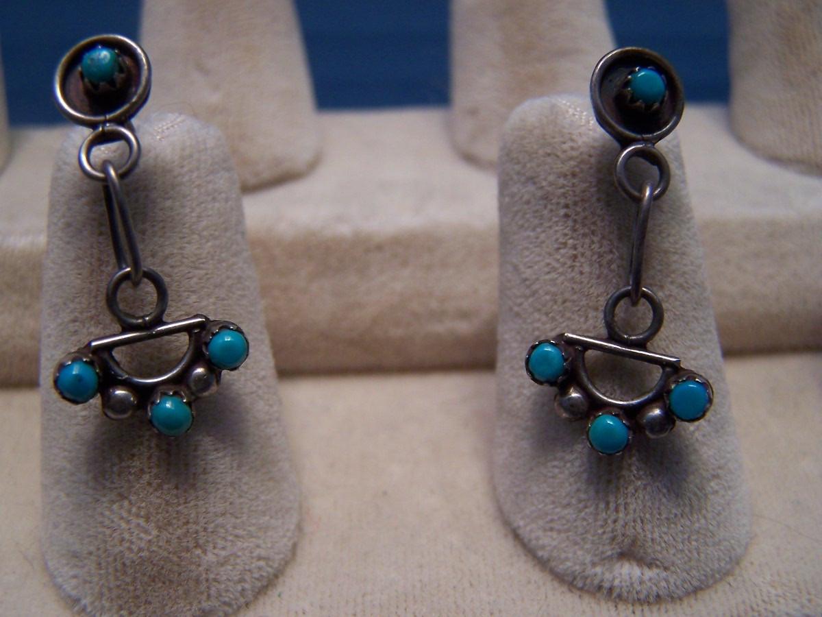 LOT 8 NATIVE AMERICAN SILVER TURQUOISE DANGLES BEAR EARRINGS