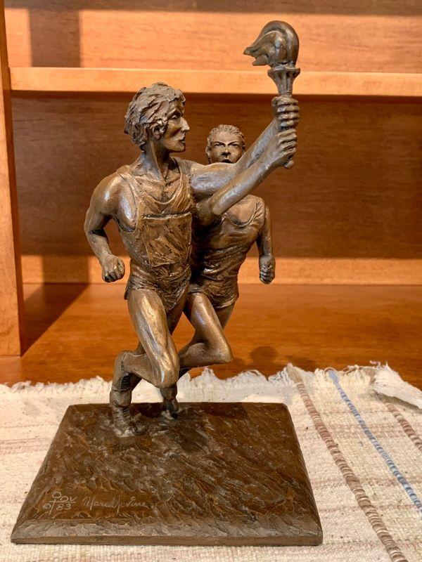 LOT 8. 1984 OLYMPIC TORCH BEARER SCULPTURE MARCEL JOVINE