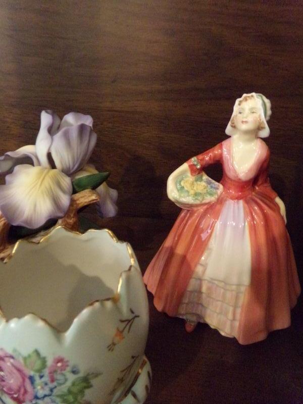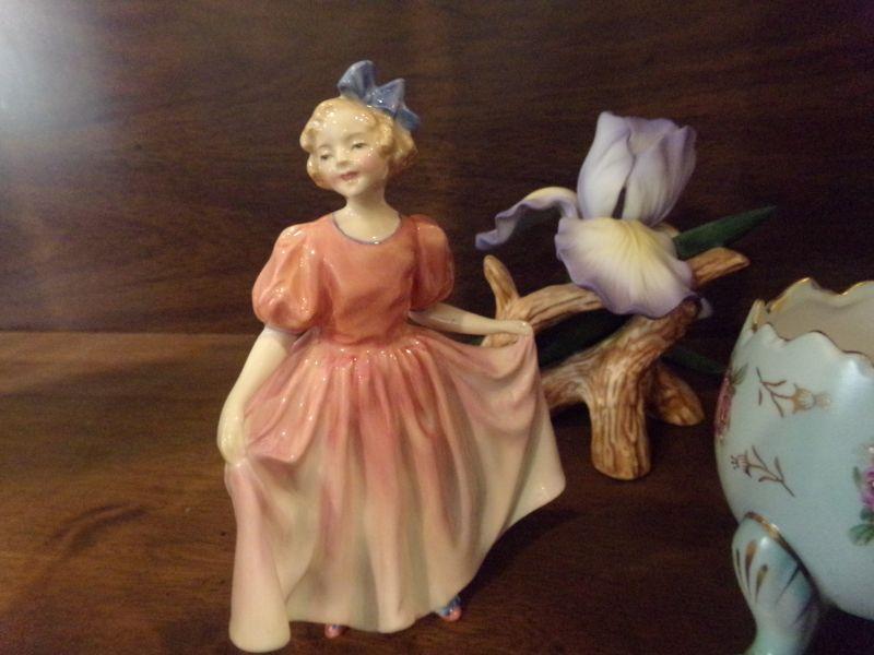 2 ROYAL DAULTON FIGURINES, CERAMIC FLOWER AND TRINKET BOWL