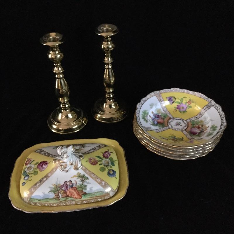 Lot 8 - Set of Brass Candlesticks and Fine China