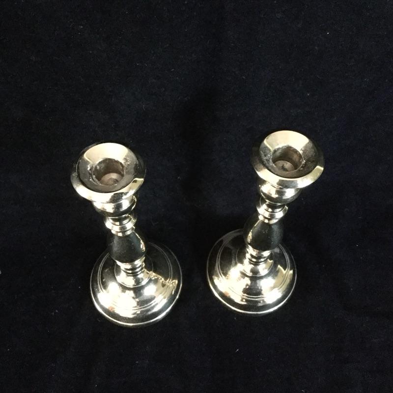 This lot includes Two Solid Brass Candlesticks with Manufacturers Stamp on the bottom of each.