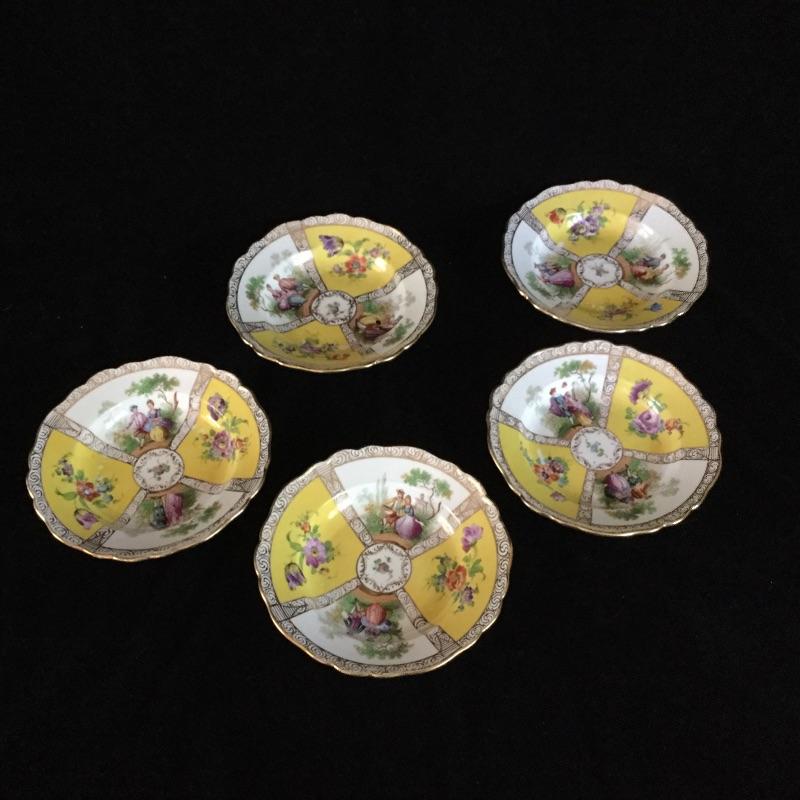 The Lot includes a Set of Five German RK Mark, Dresden Fine China Bowls and Butter Dish.