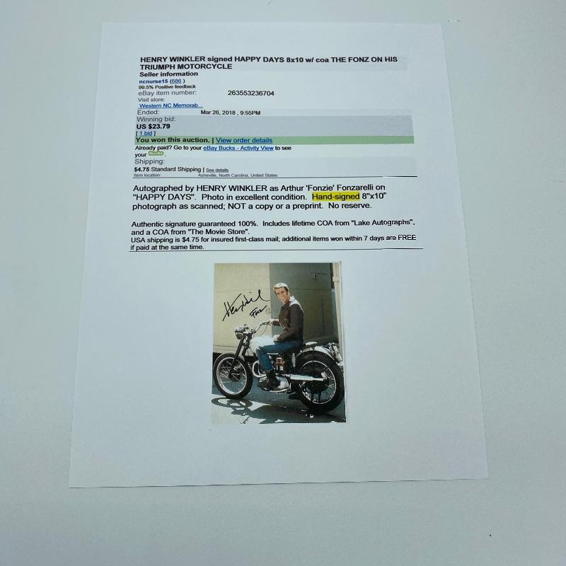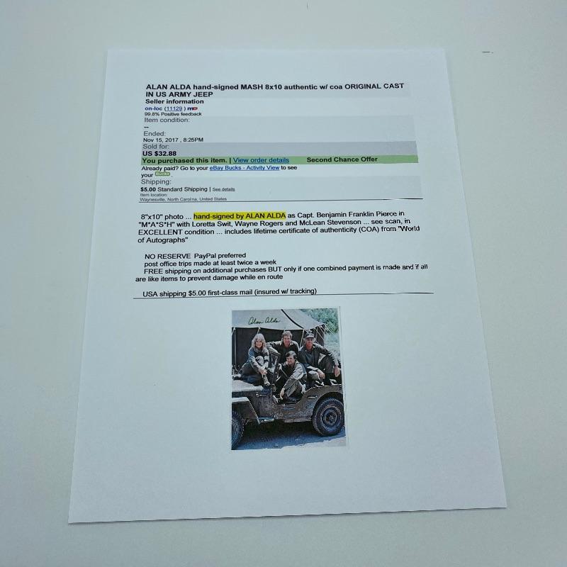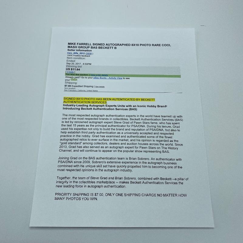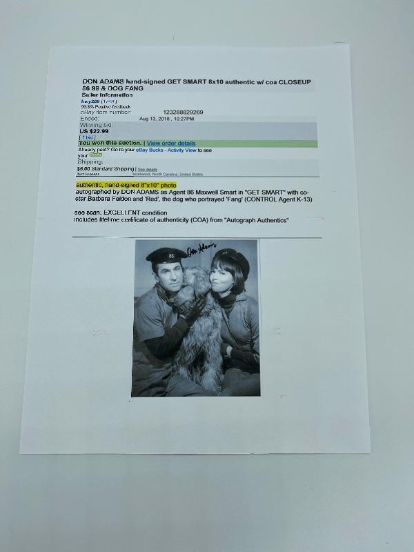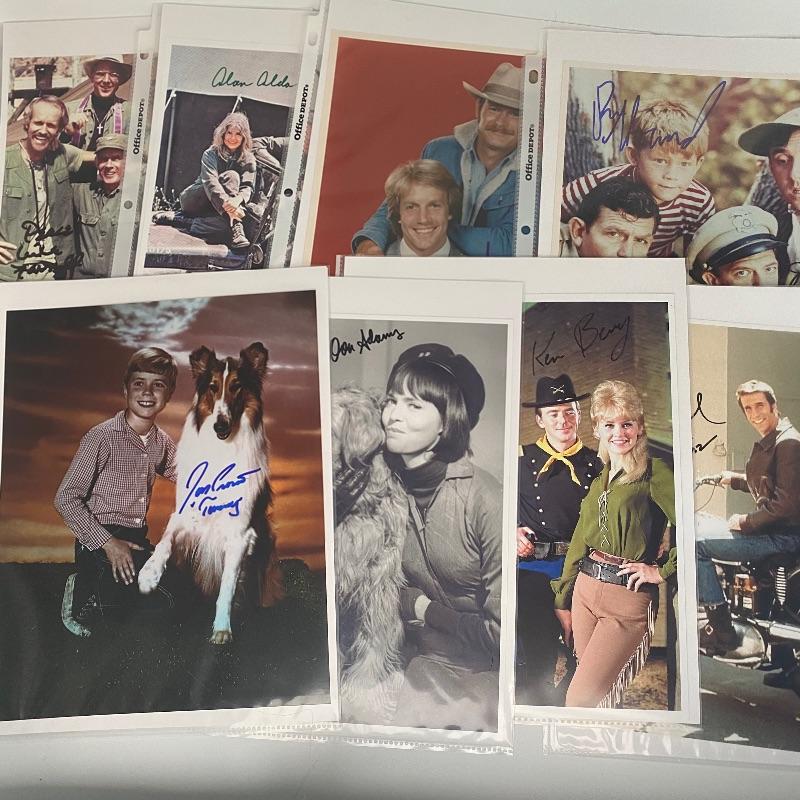 9 photos include Lassie star Jon Provost, MASH star Mike Farrell and Alan Alda, F-Troop star Ken Berry, Andy Griffith Show cast, Happy Days star Henry Winkler, Simon & Simon star Gerald McRaney, Erin Gray & Gil Gerard from Buck Rogers, and Get Smart star Don Adams. No COA for the Andy Griffith Show cast, but all other photos have COA.