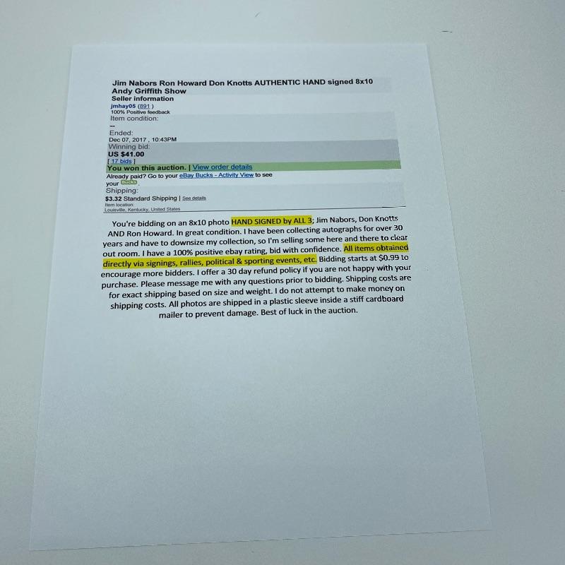 ALL items shipped or local pick up in Asheville. No item in this auction has been verified or authenticated by any other means other than what was provided by the family and is being offered as we have found them. Some of the boxes of cards say "Complete set" but we have not verified. Purchase at your own discretion. Absolutely no guarantees and no returns or refunds given if proven to be false. Most autographed items appear to have been purchased on eBay and most cards through authorized sellers.