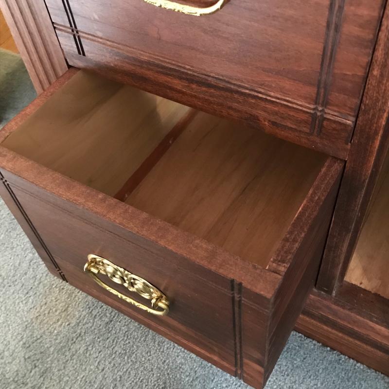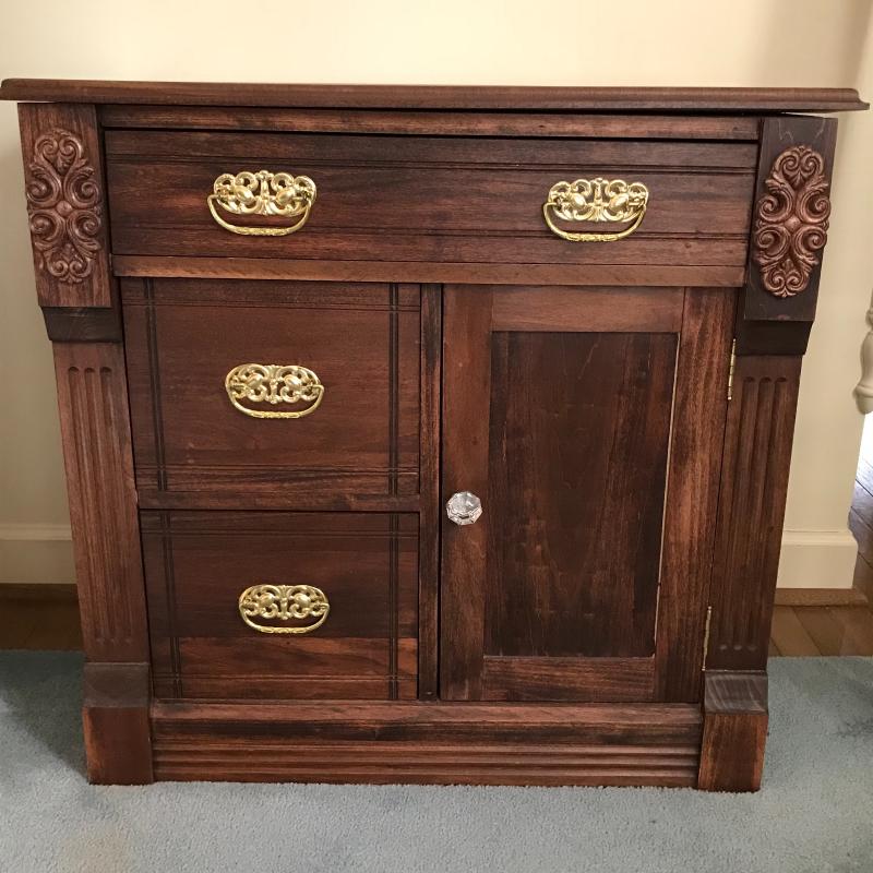 Antique look but newer construction, possibly home made. This piece could work well anywhere you need extra storage space. Would be tall for a nightstand. In good shape. 30”l x 18”w x 29”h. No shipping available. Local pickup only in Flatrock, NC.