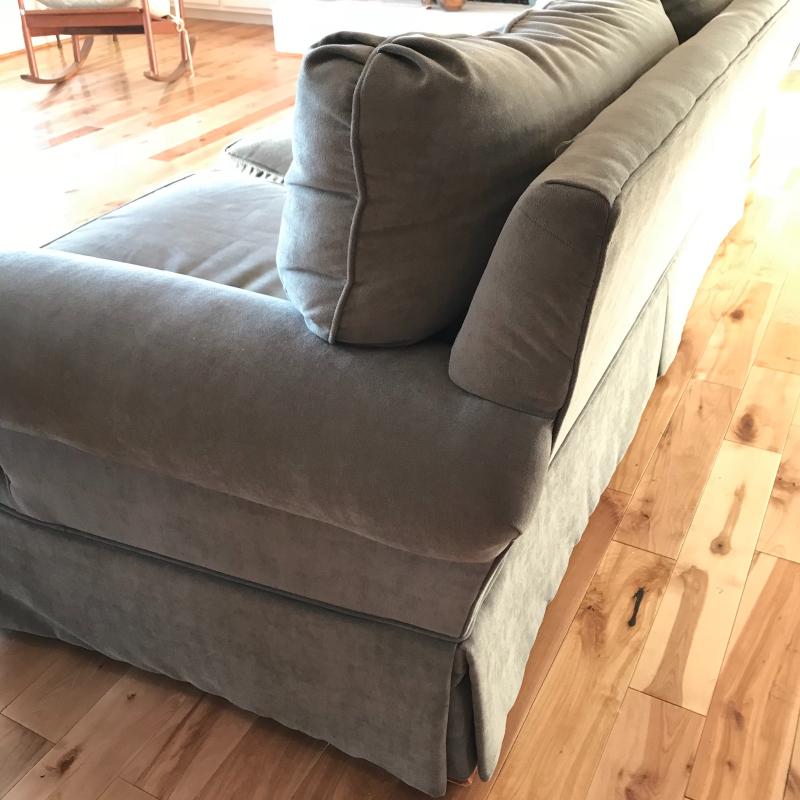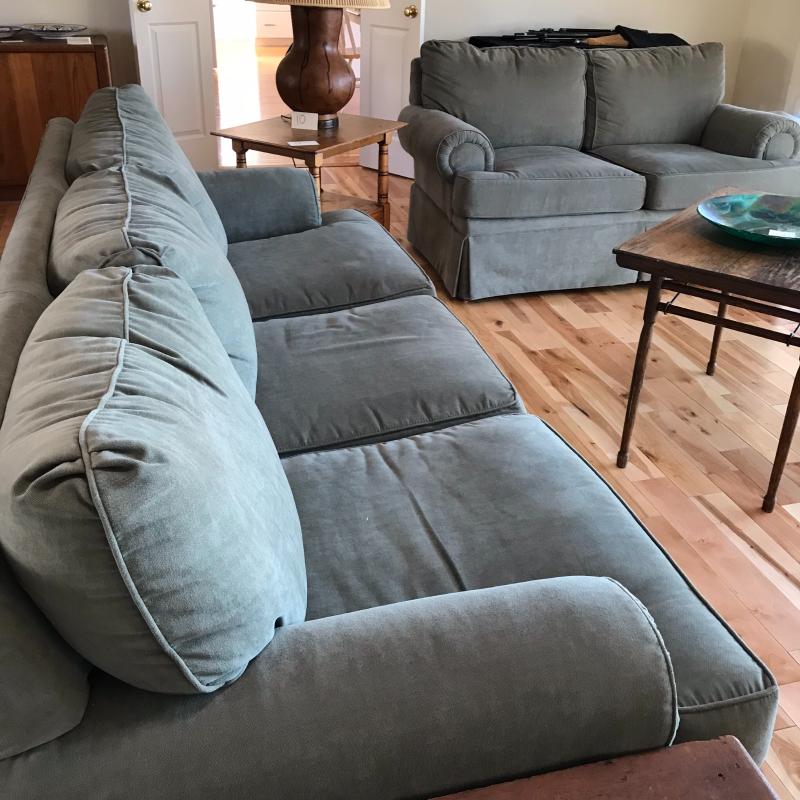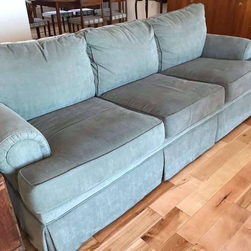 Sofa by Temple, Inc. Matching love seat is Lot 7. Sage green color. Great condition. 89”l x 36”w x 36”h. No Shipping available. Only local pick up in Asheville, NC.
