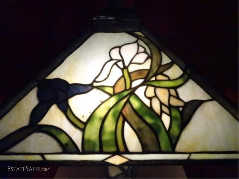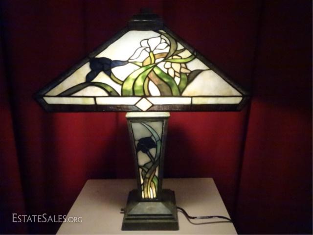 LOT 8: TIFFANY STYLE LEADED GLASS TABLE LAMP