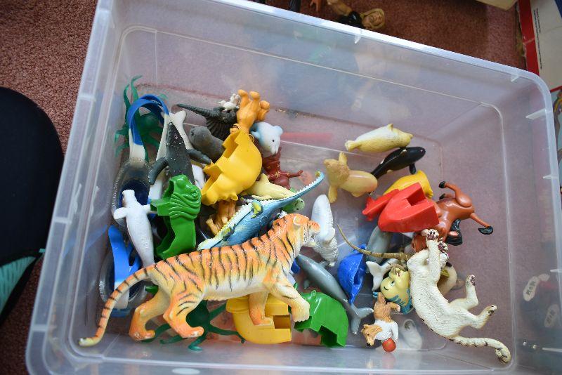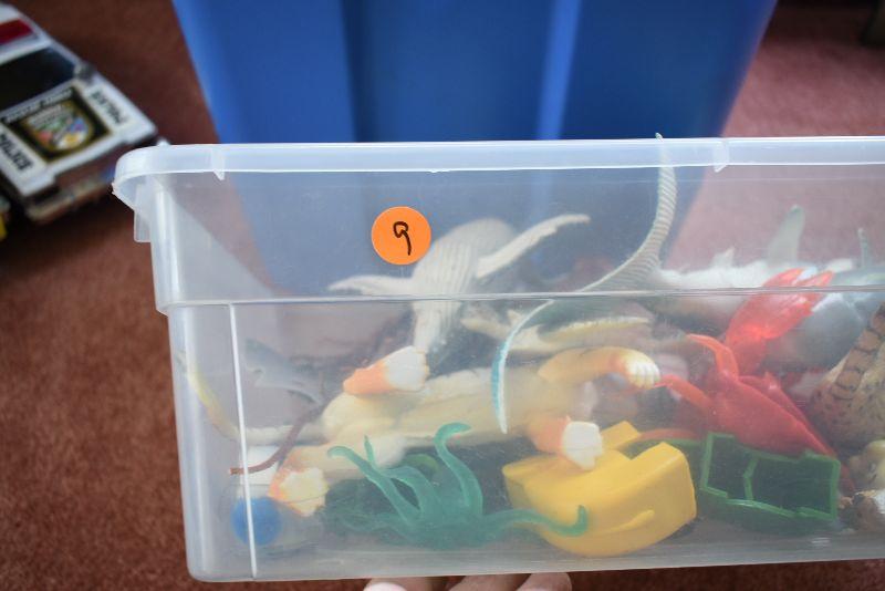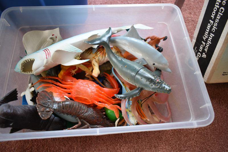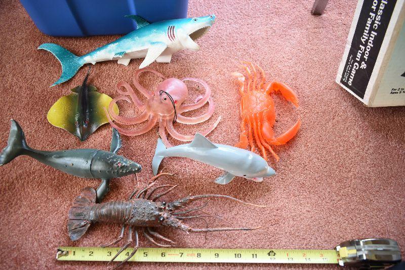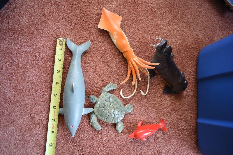 Under the sea with rubber sharks, turtles, crabs and more. Wear noted.