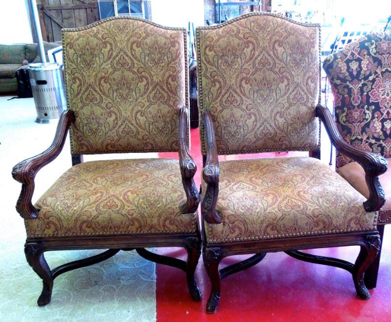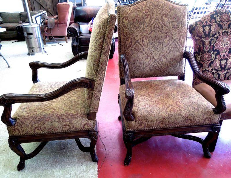 Lot 8: Two Carved Thomasville Upholstered Arm Chairs