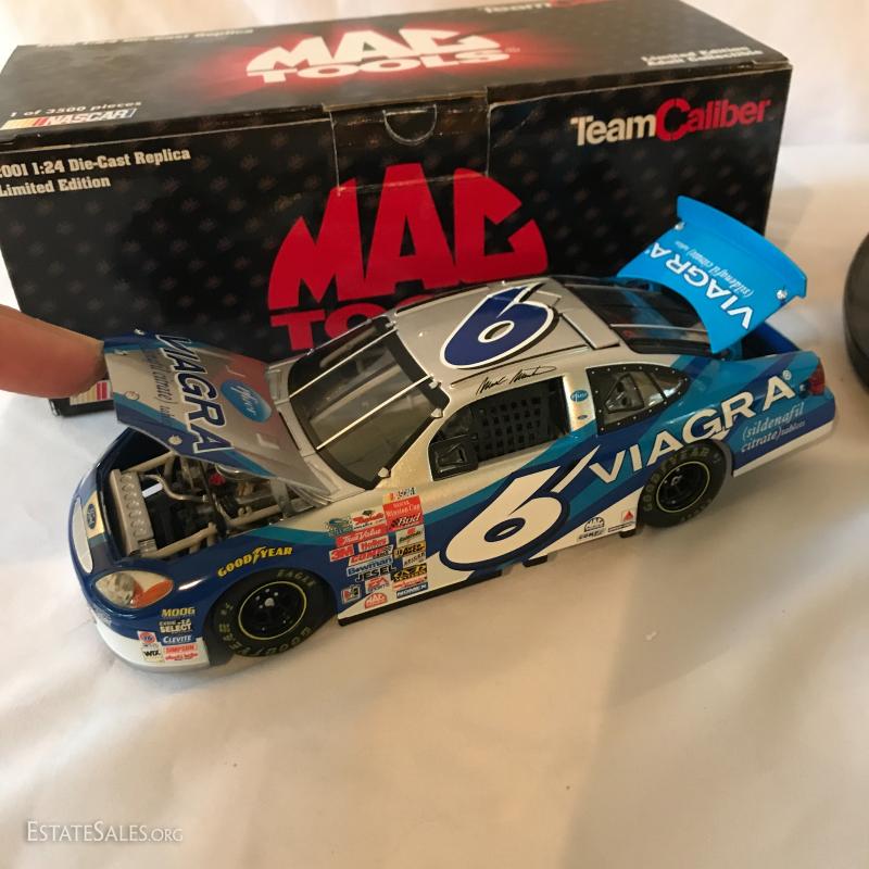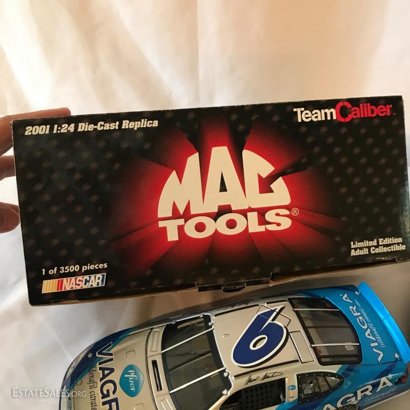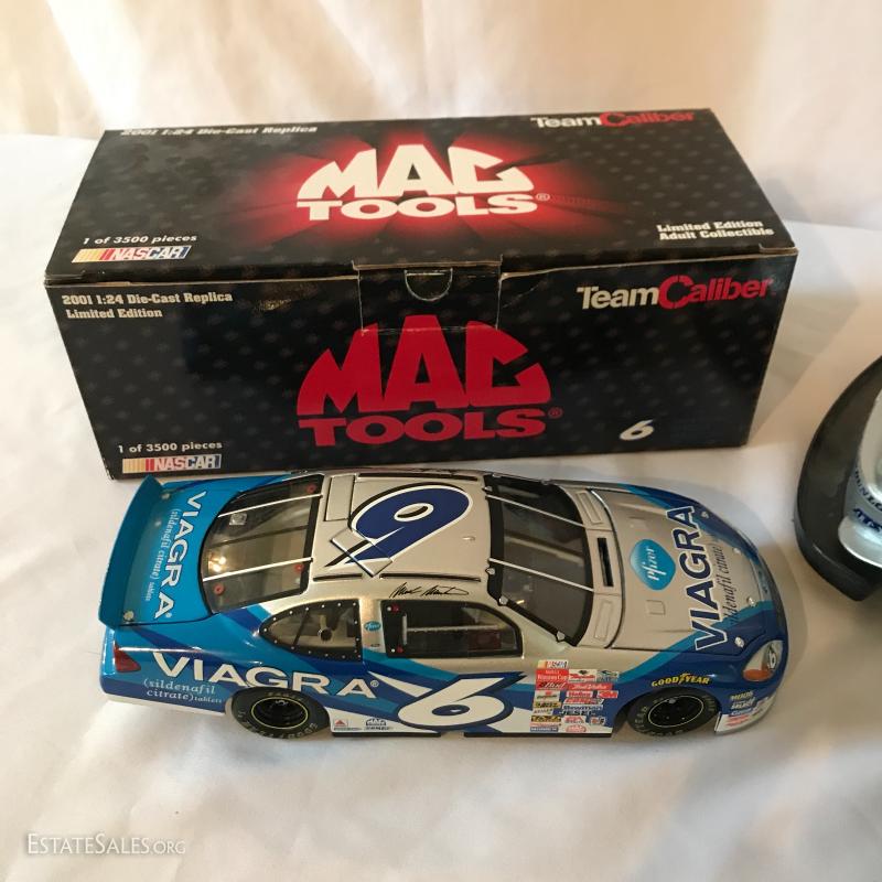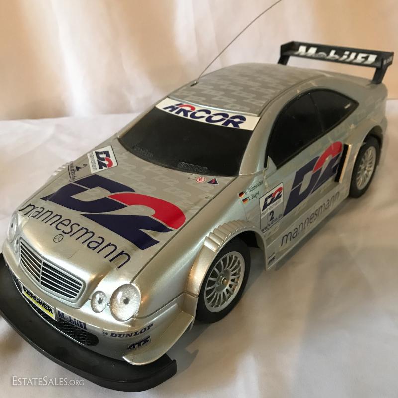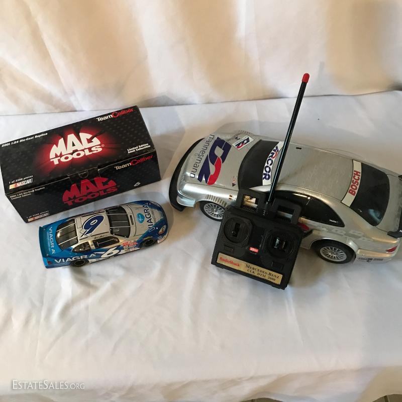 Two cars, one remote-controlled Mercedes race car that measures 16" long. One 1:24 Die-Cast Replica 2001 Limited Edition Adult Collectible by Mac Tools. Team Caliber. In original box. See photos for details. Shipping available or local pick up in Flat Rock, NC.