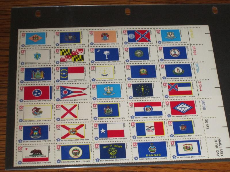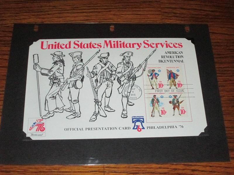 United States Military Services - American Revolution Bicentennial First Day of Issue - Official Presentation Card Philadelphia '76. Bicentennial Era 17776 - 1976 State Flag Stamps. . Please review pictures for complete listing of stamps