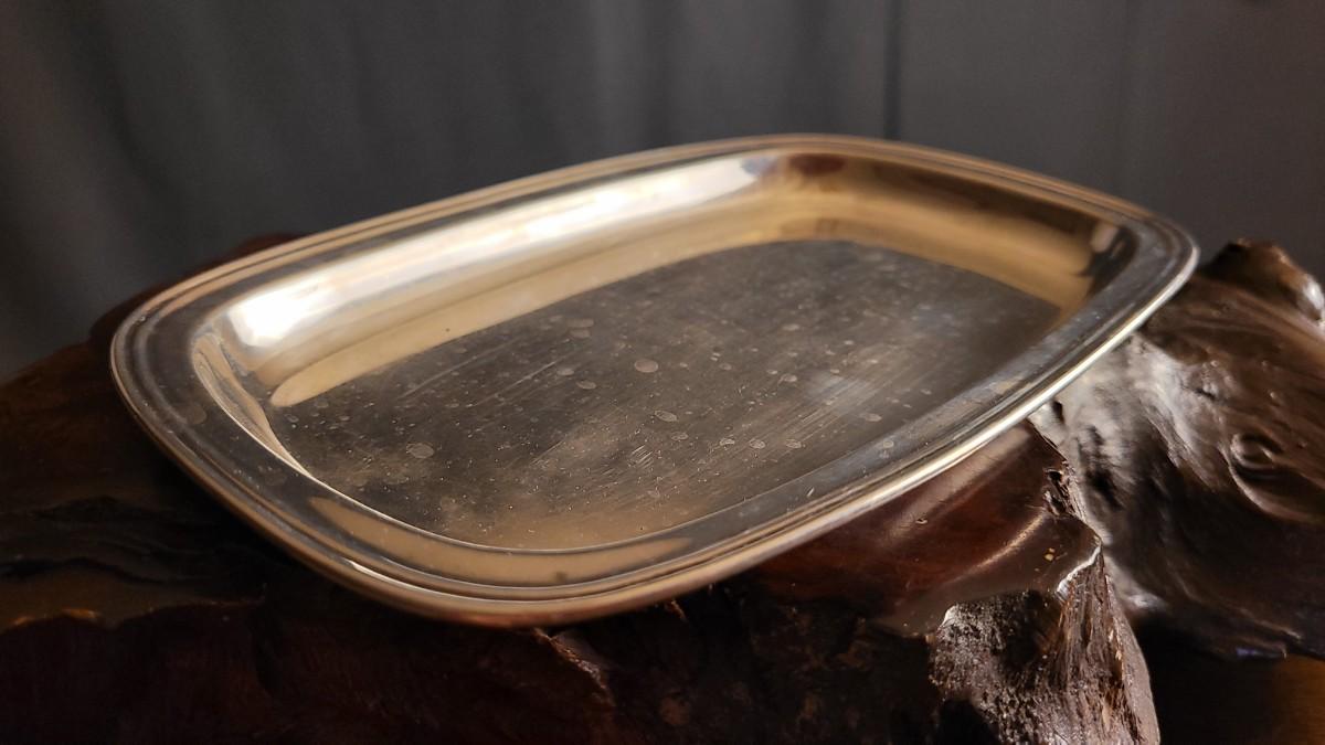 This lot features a Vintage Sterling Silver Serving tray. In great condition for age with only a few very small dings. 8.5 out of 10. Just over 148 grams. 8" x 4".