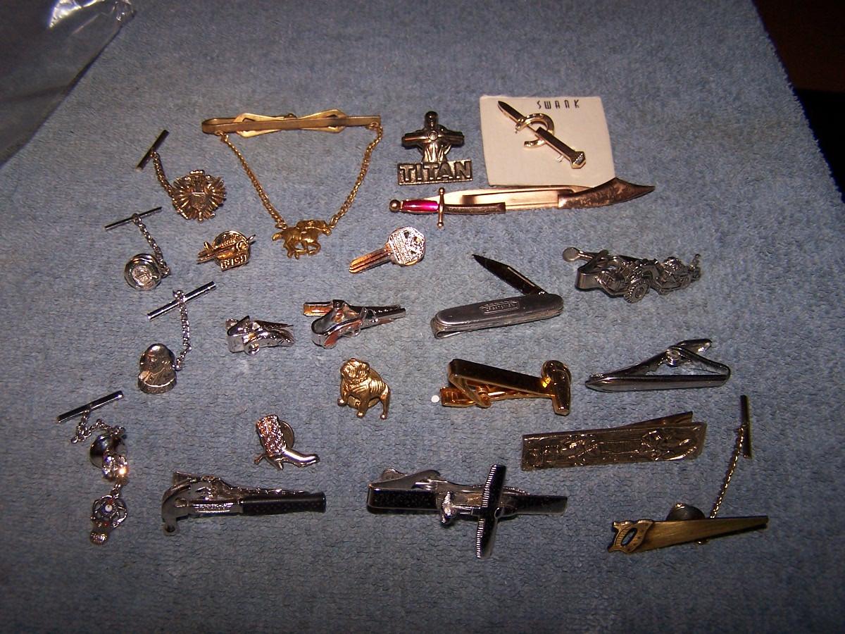 LOT 8 VINTAGE ADVERTISING & FIGURIAL TIE TACS CLIPS 22 PCS